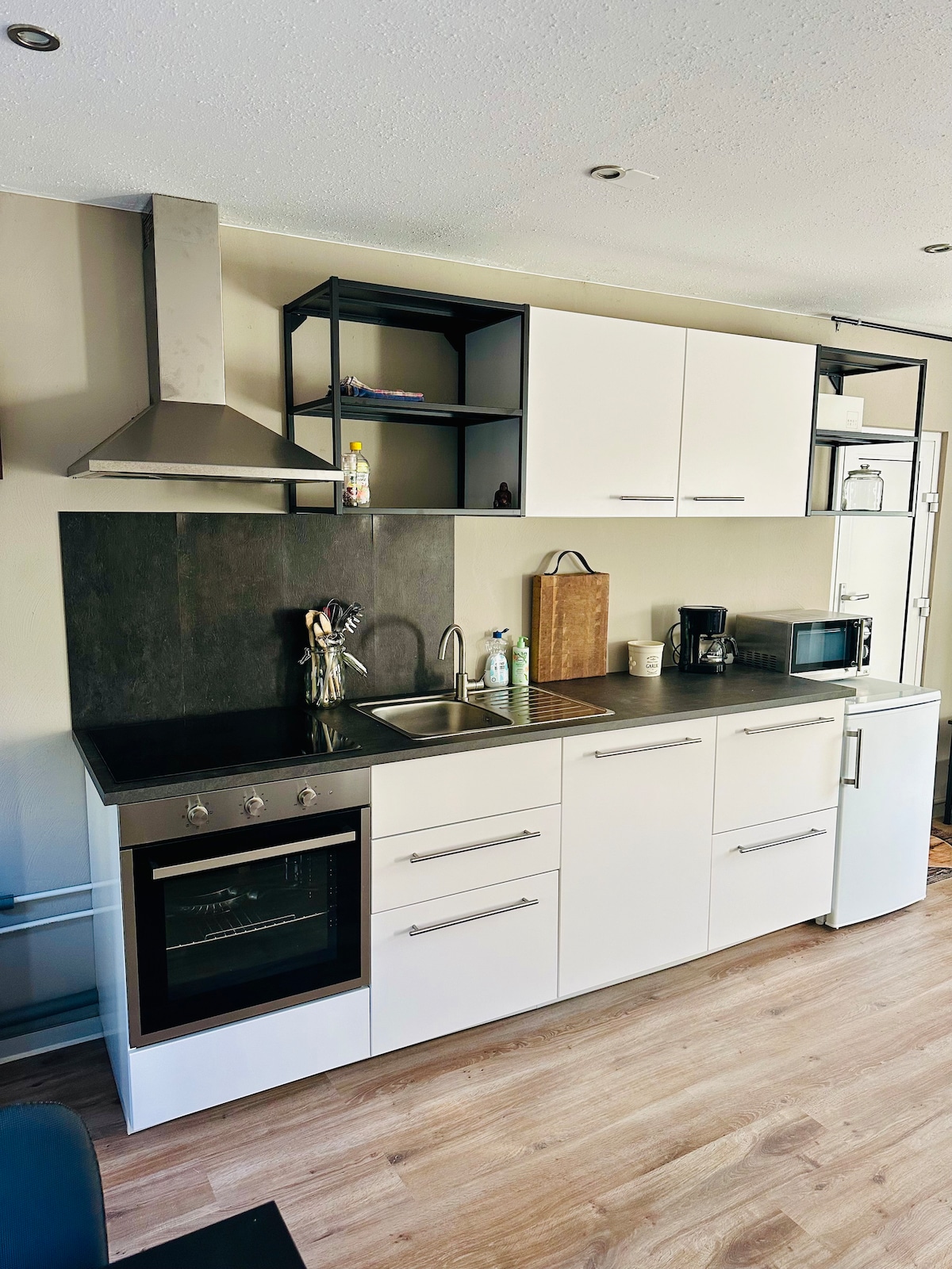 Naš udoban stan u potkrovlju je opsežno renoviran 2021. godine, površine oko 60 m ², opremljen kuhinjom i kupatilom. Do prostora za spavanje možete da dođete preko malog stepeništa. Direktno ispod je još jedna spavaća soba, u kojoj se nalazi sofa na razvlačenje, garderoba, kao i toaletni stočić. Tu su i dve skladišne sobe u kojima možete da okačite veš i čuvate hranu.