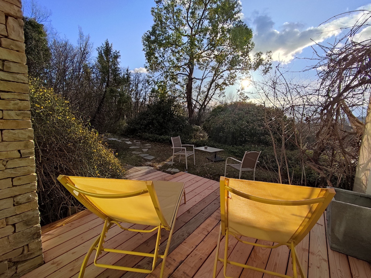 Izabrani ambasadori Maisons de France od strane Airbnb regije Provansa Alpes Côte d'Azur, naša mala čahura nosi oznaku Valeurs Parc. Idealno za 2 osobe restaurirane ekološkim materijalima (kreč, konoplja, drvo, terakota) veoma je sveže i zdravo: idealno mesto za otkrivanje zemlje Verdon, između niskih klisura i polja lavandina, okruženih vinovom lozom i maslinama. Možete uživati u ariš terasi ispod blagonaklonog hladovine smokve i vinove loze.