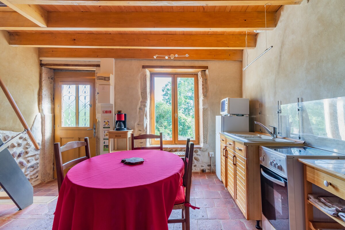 Studio de 30m², état neuf, entrée indépendante, au calme avec coin jardin privatif. Sentiers de randonnée au pied de la maison et nombreux points d'intérêt touristiques à proximité. Pleine campagne, sans vis-à-vis, le réveil est assuré par le chant des oiseaux. Avec un peu de chance vous pourrez être témoins de magnifiques couchers de soleil ! Nous possédons un coq et des oies... Boulangerie, pharmacie et restaurants à 8 mn et grande surface à 10 mn.