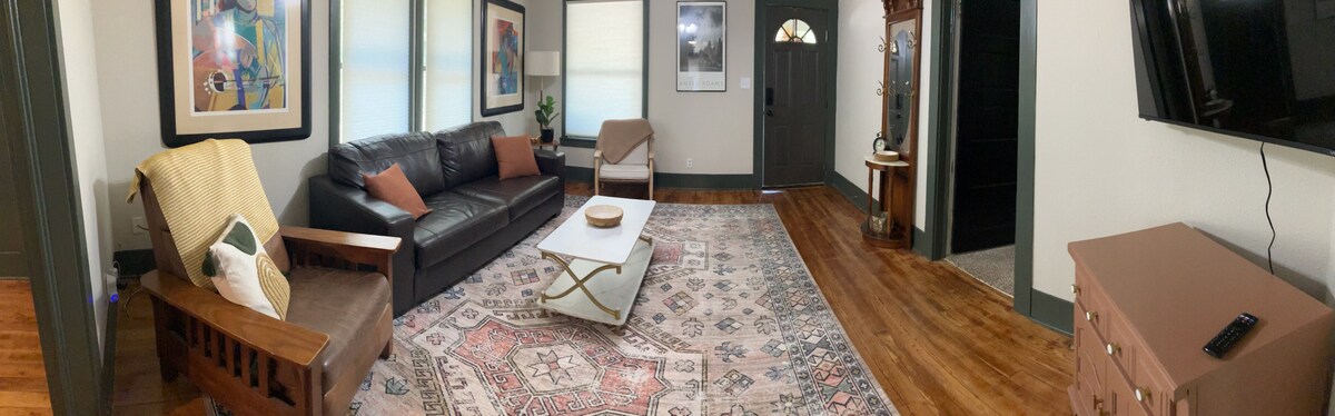 *Super clean *Short walk from downtown and TSU *Flexible check in/out *Flexible cancellations *Relaxed and quiet neighborhood The Owl’s Nest is a charming, newly remodeled craftsman bungalow that has retained its old charm, with original hardwood floors, and wood embellishments. Whether you are visiting Stephenville, or just enjoying a night out, this house has everything you need including a fully stocked kitchen, washer and dryer, Wifi, and outdoor grilling space with seating and fire pit.