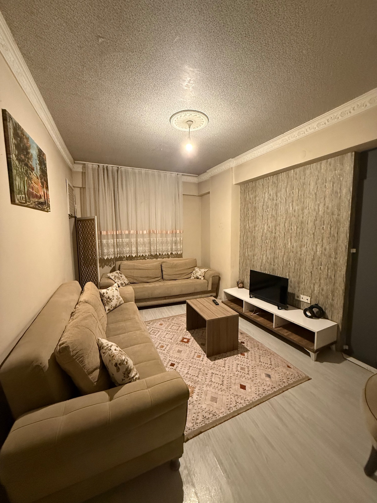 Ako odsjednete u ovom smještaju koji se nalazi u centru grada, bićete blizu svega kao porodica. Stan za iznajmljivanje pogodan za velike porodice na glavnom putu sa prirodom i pogledom na rijeku udaljen 10-15 minuta automobilom u Uzungo. Parking je dostupan. Postoje dvije spavaće sobe, 4 kreveta, jedan od kreveta je bračni krevet i prostrana dnevna soba. U dnevnom boravku se nalaze 3 dodatna kauča koji mogu biti dvostruki. Možemo lako da primimo 7-8 osoba. Naš stan se nalazi na prvom spratu i ima stakleni balkon. Nema Wi-Fi mreže, pegle ni fen za kosu.