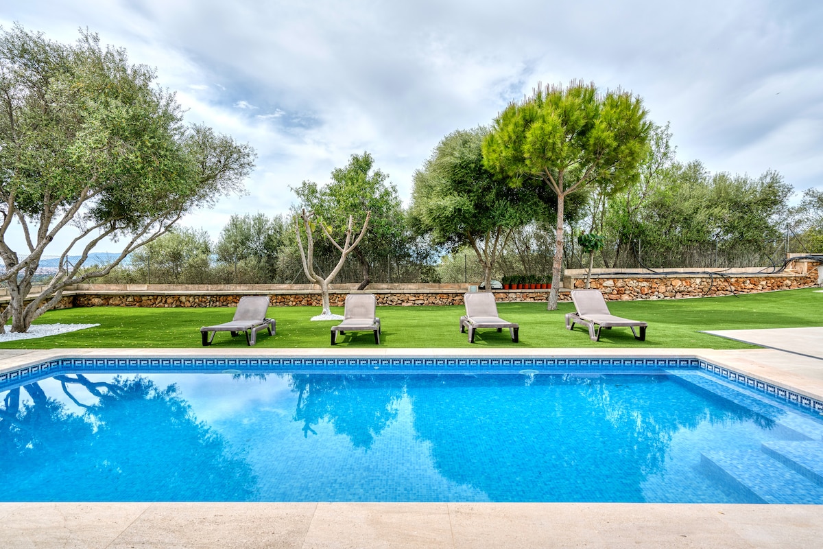 Modern villa of 235 m2 and garden of 800 m2 with swimming pool and barbecue, where you can enjoy the tranquility in harmony with nature. It can host up to 8 guests who can enjoy a typical Mallorcan neighborhood located just 13km from Palma. ETV/3570 nº Registro: REGAGE25e00020454656