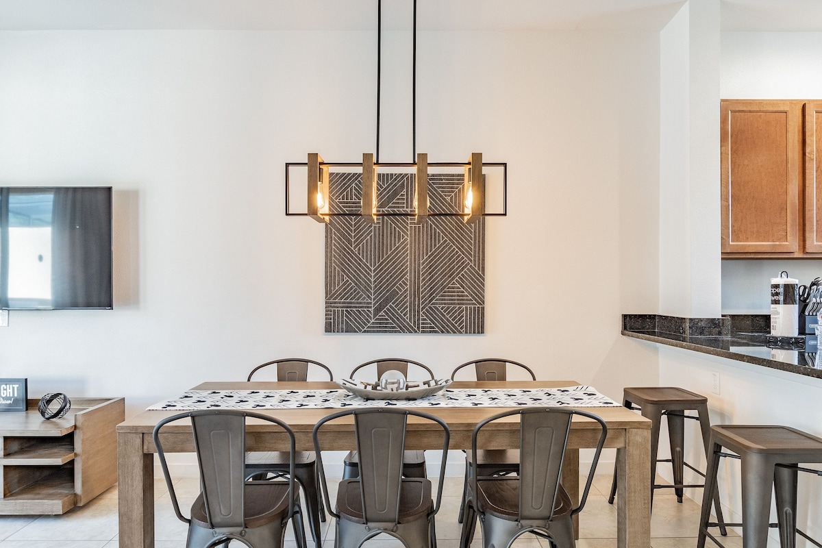 Uživajte u potpuno novoj, prelepo dizajniranoj kući u nizu koja se nalazi u ekskluzivnoj zajednici Magic Village, udaljenoj samo nekoliko minuta od Diznijevih parkova. Šta će vam se svidjeti: • Privatno unutrašnje dvorište sa baštenskim namještajem • Besplatan Wi-Fi • Čiste peškire i posteljinu • Potpuno opremljena kuhinja • Roštilj (bez dodatne naknade) • Besplatan parking (bez dodatnih troškova) Bazen, teniski teren i fitnes centar treba da plate dodatnu naknadu od 100 USD po grupi dnevno. ✨ Rezervišite sada i uživajte u nezaboravnom boravku u blizini magije!
