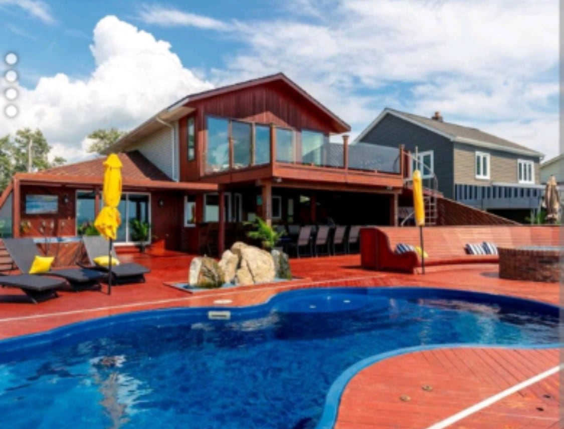 *ZAGREJANI BAZEN JE SPREMAN!* Dobro došli u najveći i najudobniji smještaj u Vindzoru! Ovaj predivan dom spaja moderan dizajn sa udobnošću, sa privlačnom sunčanom sobom sa visokim plafonima i prirodnim svjetlom, savršenom za jutarnju kafu ili mirne večeri. Elegantna dekoracija stvara elegantan, ali i domaći osjećaj :) Opustite se u privatnoj oazi u dvorištu sa unutrašnjim ovalnim bazenom dubine 15x30, 8’sa potpuno NOVOM grijalicom i prostorom za roštilj! Naše dvorište osmišljeno za jedinstven i opuštajući porodični doživljaj!