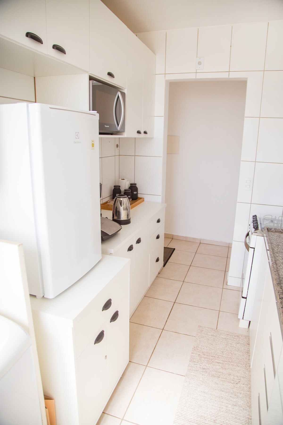 Apartamento moderno, completo e pensado para uma estadia prática e confortável. 🧼 Roupas de cama e toalhas brancas, higienizadas . 📶 Wi-Fi rápido, ideal para trabalho remoto 🛏️ Cama confortável Queen 🧺 Máquina lava e seca 🍳 Cozinha completa equipada com eletrodomésticos (cafeteira, air fryer, liquidificador, sanduicheira) e utensílios 🚿 Água filtrada disponível 📺 2 Smart TVs (sala e quarto) ⏰ Horários flexíveis de entrada e saída (sempre que disponível, sem custo extra)