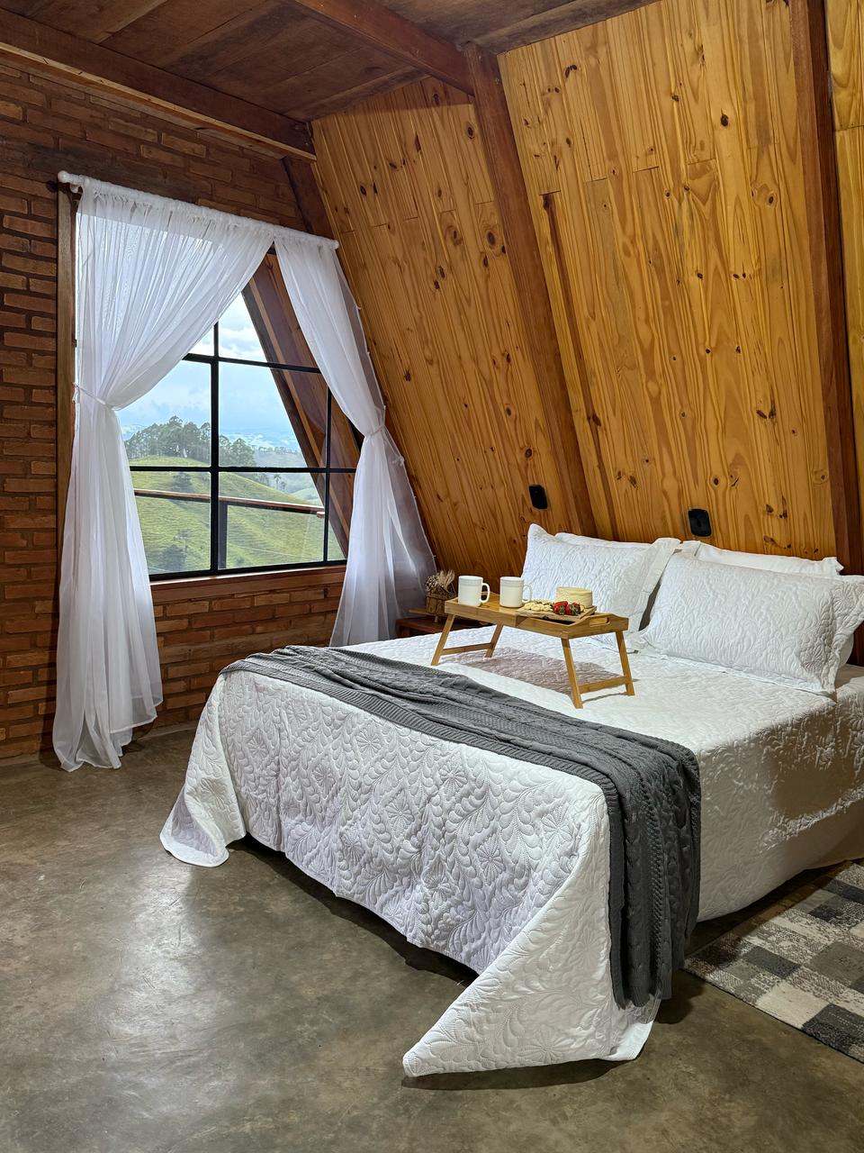 Boravite u udobnoj planinskoj kući u autentičnoj tradicionalnoj seoskoj kući u Minas Žeraisu. Sa balkona se pruža jedinstven pogled: unutrašnjost krošnje drveta sa lišćem – gnezdo za kokoške i ptice – a u pozadini se nalazi malo jezero i predivna planina. Probudite se uz nežne zvuke prirode: ptice pevaju, a petao najavljuje dan. Opustite se u kadi sa divnim pogledom kroz veliki prozor. Svaki detalj je osmišljen da pruži udobnost, lepotu i harmoniju sa prirodom