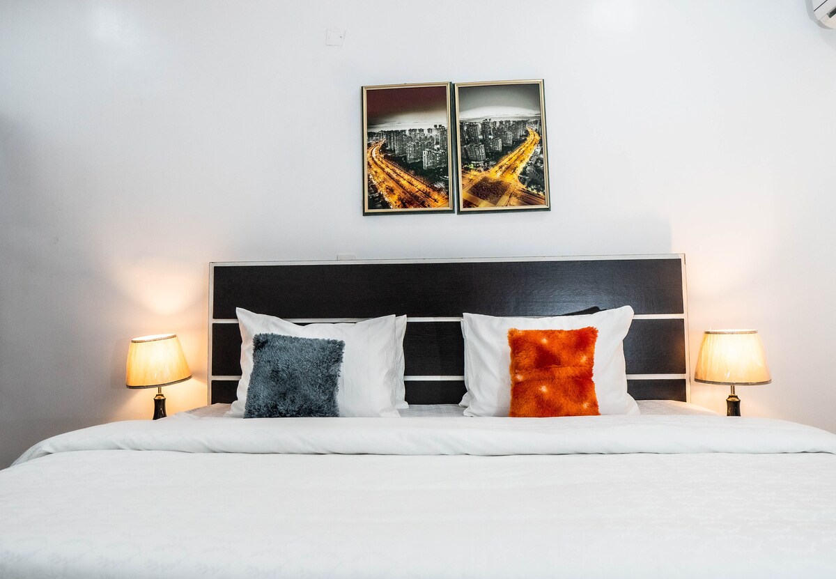 Visit DelMor Short let Apartments where luxury is our trademark. It is in a serene and secure environment in Lekki, Lagos, Nigeria. Each expansive one-bedroom apartment comes with a furnished living room, ensuite bedroom, and well-equipped kitchen with the finest appliances and fittings. We provide uninterrupted power supply, fibre-optic super fast Wifi, CCTV in common areas and external environment, laundry services, smart TVs and lots more. We promise to make your stay memorable.