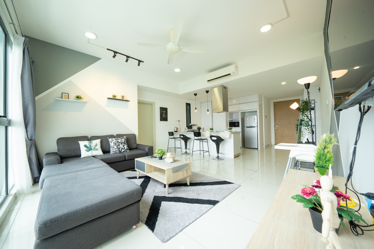 Luxurious spacious 3-Bedrooms unit with Bathtub! Premium quality King & Queen size Beds that guarantee good sleep here with amazing Midvalley Southkey Mall view! Main Highlight! -Private Bathtub -65" Smart TV with YouTube and Netflix apps -Pool Table -Retro Game Console -Drinking water Dispenser Surround with shopping mall & wide range of local tasty food - 2 mins drive to Midvalley Southkey JB - 5 mins to KSL City Mall - 8 mins to City Square Mall & Custom JB