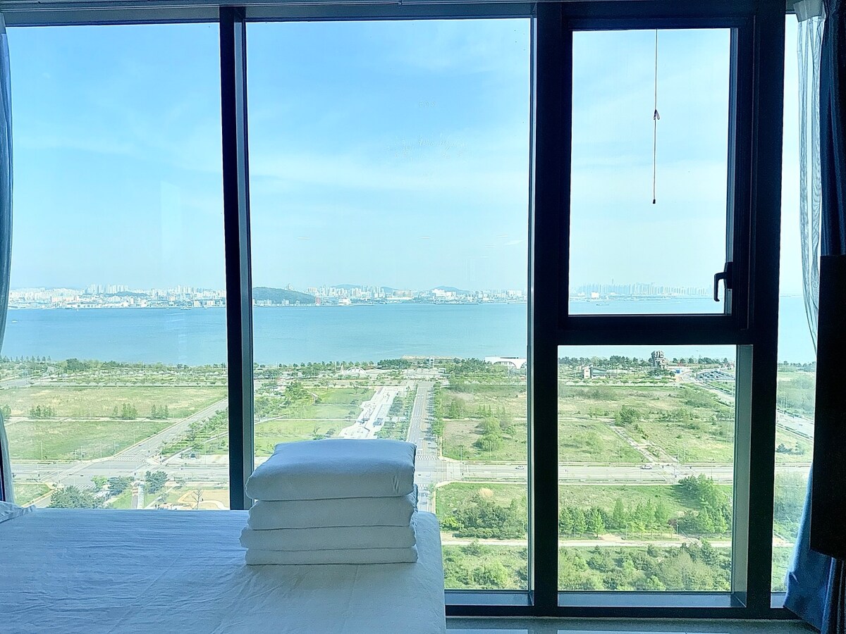 찐 오션뷰/ 바다앞 테라스/인스파이어/넷플릭스/무료주차/비대면 체크인/인천공항 15분!