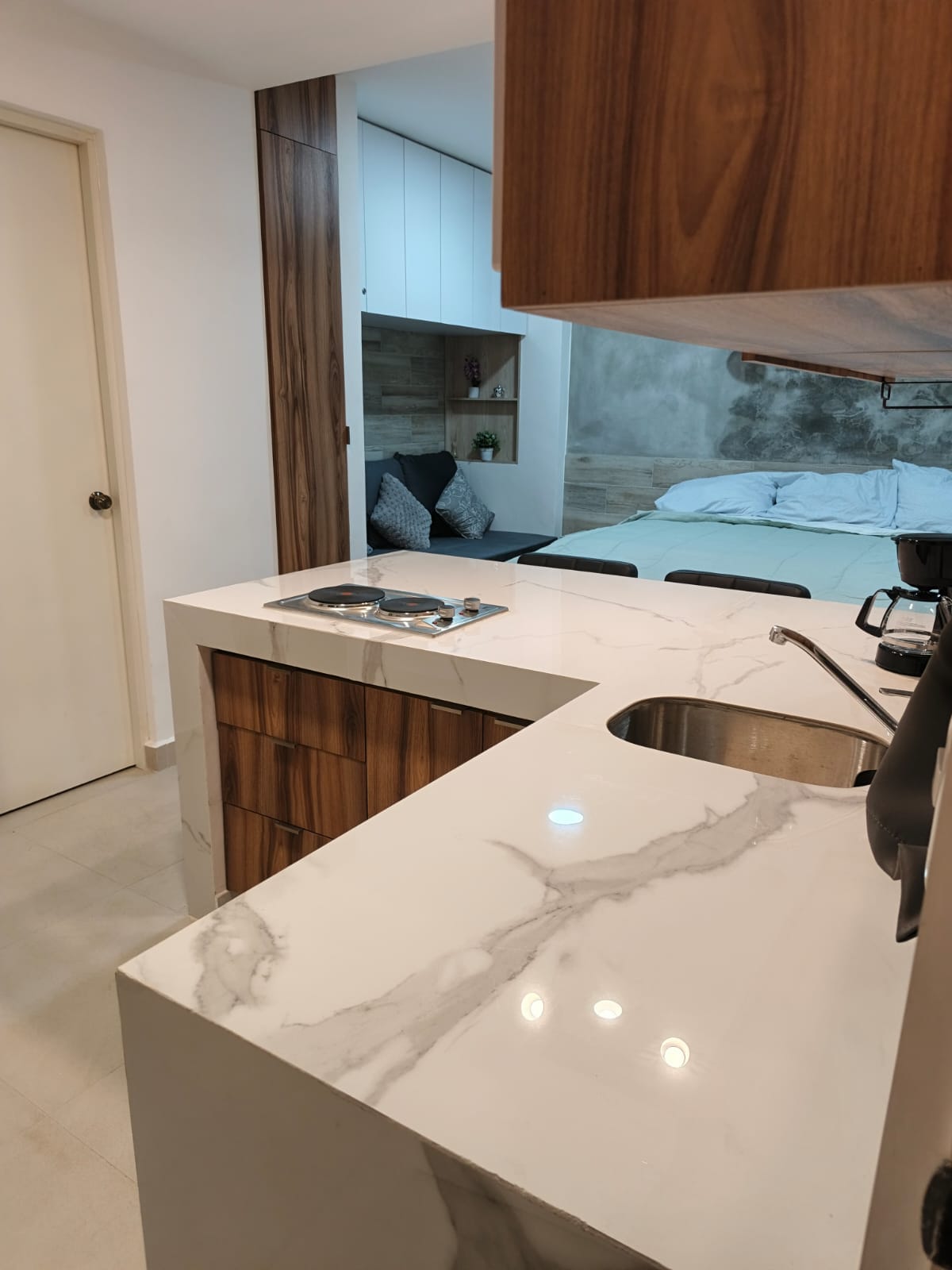 Suite privada y moderna ubicada a solo 14 kms aprox a 20-40 minutos del Aeropuerto Internacional de Monterrey. Diseñada para quienes necesitan un espacio cómodo, seguro y práctico entre vuelos, durante viajes de trabajo o estancias en la zona industrial. La entrada es completamente independiente y el entorno es tranquilo, con vigilancia en el fraccionamiento para una estancia sin preocupaciones.