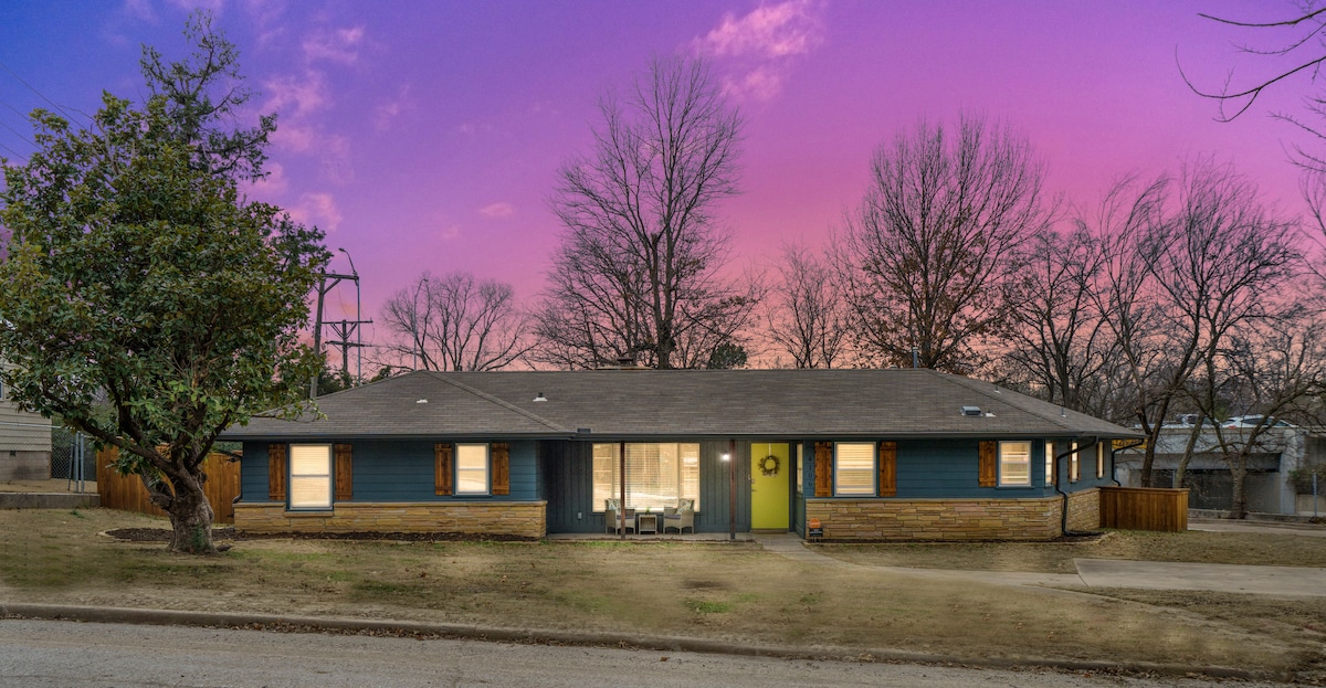 Charming newly remodeled midtown home just off of Historic Route 66. It's close to the fairgrounds, TU, Cherry Street & 7 minutes from the BOK Center, Cain's Ballroom, Guthrie Green & downtown Tulsa. This 2-bedroom home is perfect for couples, small families, solo & business travelers. It has a lovely outdoor space with deck & fireplace in a peaceful neighborhood. Fully remodeled kitchen & interior, plus the beds are comfy & the wifi is strong. (Dogs are negotiable, if they ask nicely.)