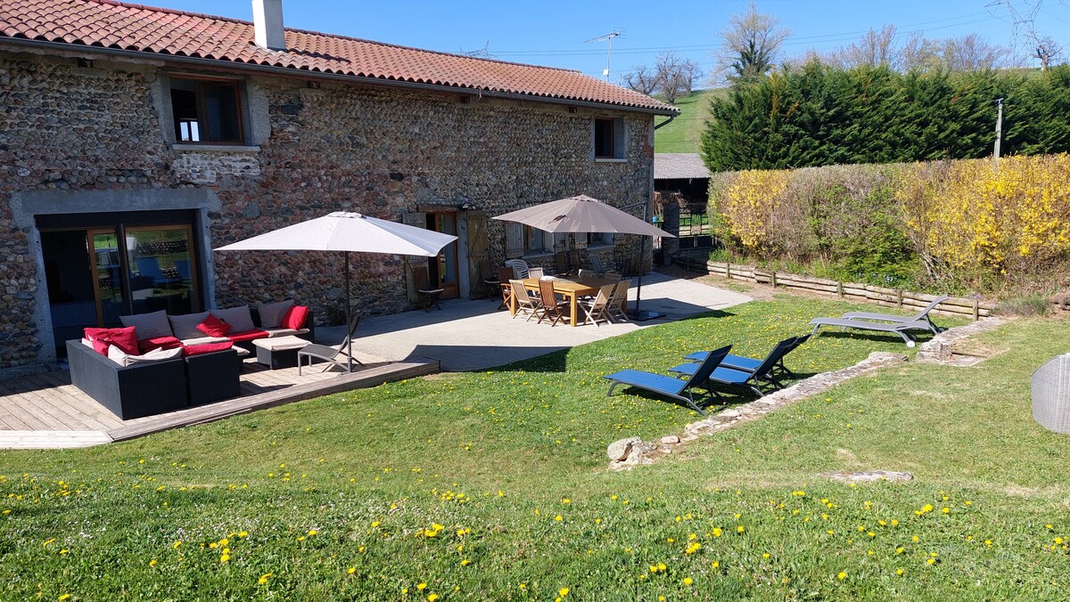 Planinska kuća! Sa parkom od 3250 m2 koji je u potpunosti ograđen i ukrašen prelijepim drvećem. Besplatan Wi-Fi i KLIMA-UREĐAJ!!! integrisana kuhinja LV. Šporet na drva, kauč na razvlačenje 2p, TV, tuš kabina, mašina za sušenje peškira i mašina za pranje veša, svaki. Kvalitetan krevet 140x190. terasa sa stolom i stolicama, baštenski namještaj, ležaljke za sunčanje, viseće ležaljke, ljuljaška, spoljni tuš, roštilj, petanque, sto za stoni tenis, pikado. 1 sat od Liona,Grenobla, Šamberija, u blizini autoputa A48, Charavines Lake Paladru 15 m