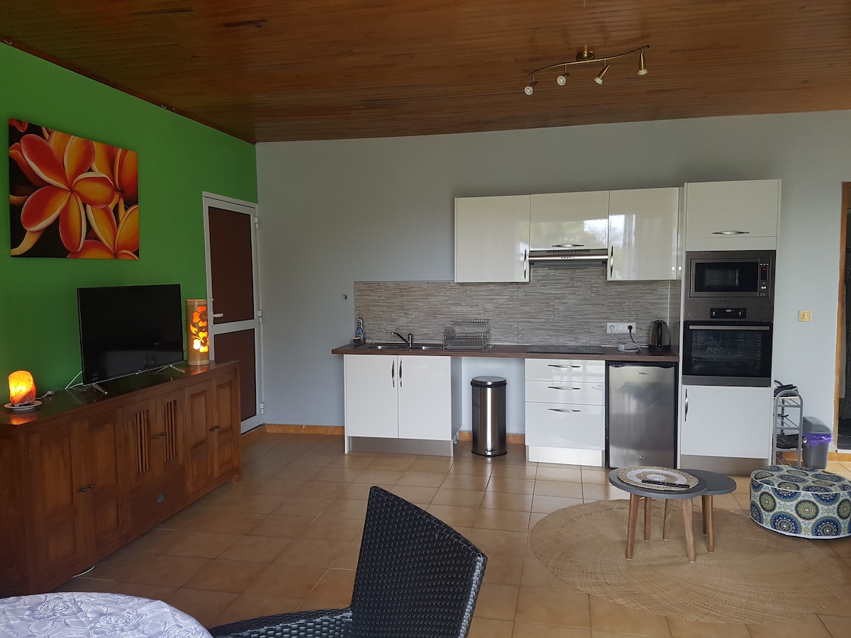 In a residential area, on the heights of Tahiti, very nice independent studio with breathtaking views of the ocean and the island of Moorea. You will appreciate the coolness of the evening on the heights of our beautiful valley. Separate access and private terrace, the use of the studio during your stay is exclusively reserved for you. You will have a reserved parking space inside our property.