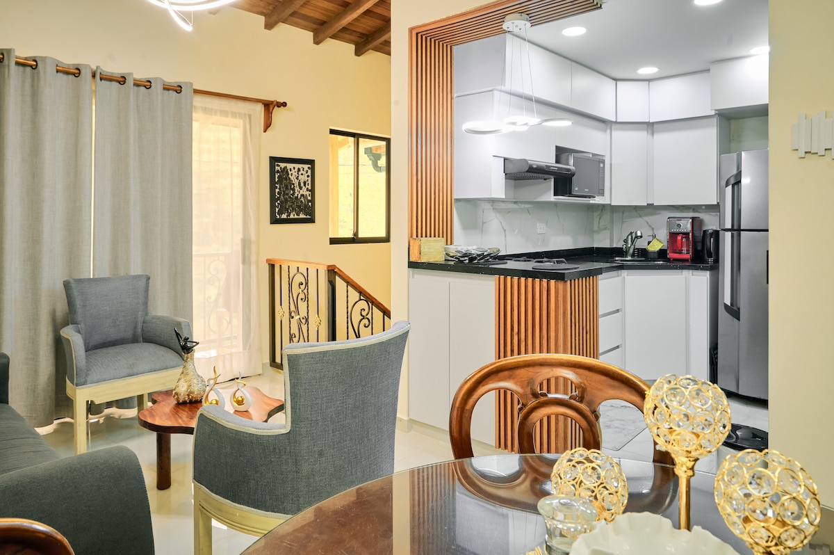 POZIVAMO VAS DA ISPROBATE NAŠU BRVNARU! Okružite se divljinom i udobnošću, u našoj modernoj brvnari u prelijepom selu Jardin Antioquia. Udaljeni smo 8 minuta od glavnog parka, u blizini hotela La Valdivija. Imamo rijeku unutar objekta gdje se možete rashladiti i udahnuti svjež vazduh, 2 spavaće sobe, svaka sa kupatilom, prva spavaća soba ima 1 bračni krevet i dva kreveta za jednu osobu, a druga sa 2 bračna kreveta i 1 krevetom za jednu osobu. Imamo potpuno opremljenu kuhinju.