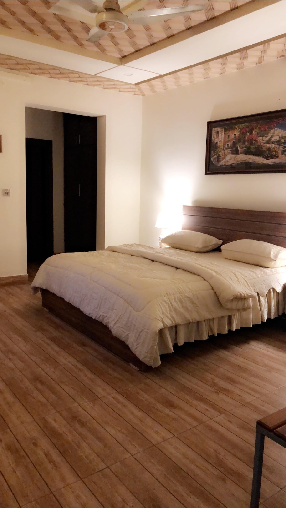 Dobro došli u naš „Mirni boravak“ u srcu Fajsalabada. Ovaj potpuno opremljeni prvi sprat (prizemlje je prazno) nudi sve što vam je potrebno za miran i udoban boravak, uključujući pametni TV, modernu kuhinju i udoban dnevni boravak. Idealan je za porodice, venčane parove i poslovne putnike, pruža savršenu ravnotežu udobnosti i privatnosti uz brz pristup pijacama. Isti objekat je dostupan i sa 2 spavaće sobe. Provjerite našu drugu objavu smještaja.
