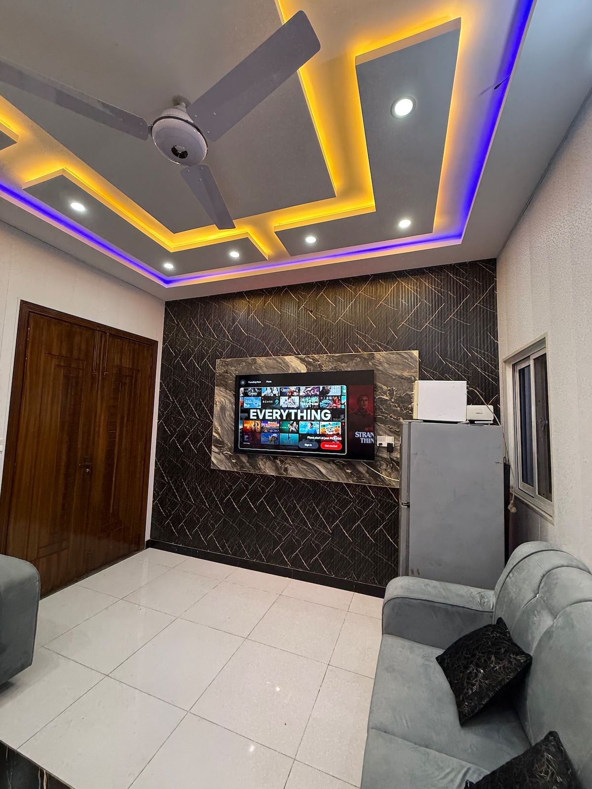its 5star Ground floor Apartment located at Lush green area on Lower canal road Faisalabad Best for Families, business travelers & groups Its very close to all attractions like kohinoor , D.ground and Lyalpur Galleria. Gated security 24 hrs its on Ground floor with all living facilities 2 Air conditioned rooms with attached baths hot water 1 Living Levish Fully operational kitchen 🌙 wifi+ free Netflix Laundry area with automatic washing machine Food delivery facilities nearby
