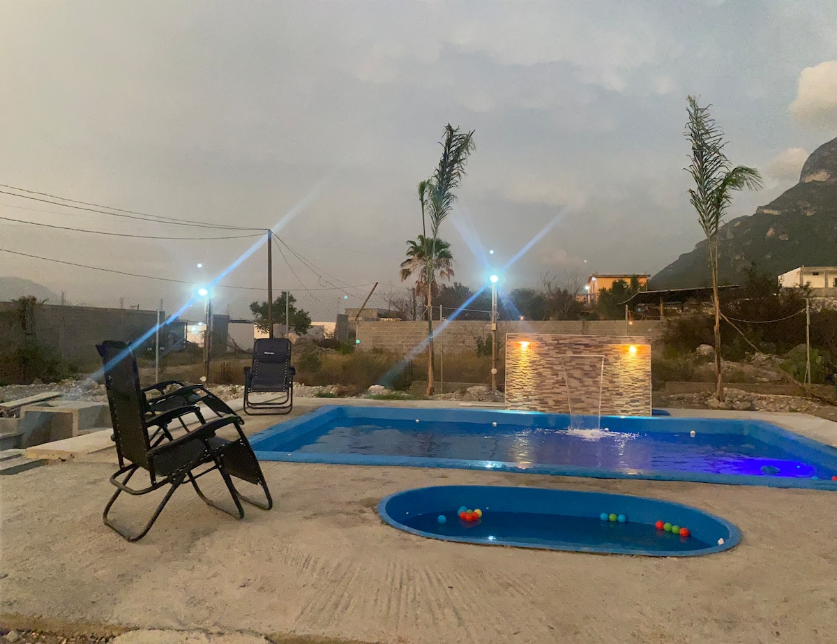 LOTR inspired Hobbit-like house for climbers in the Potrero Chico canyon. Warm, cozy, quiet, surrounded by trees and mountains. Vaulted roofs fully covered with grass and thick walls provide astonishing insulation for both temperature and sound. Handcrafted using natural materials and permaculture technics. Beautiful porch roof with cacti garden. Following our number one rule when constructing, no trees were cut down. 100% off-the-grid.