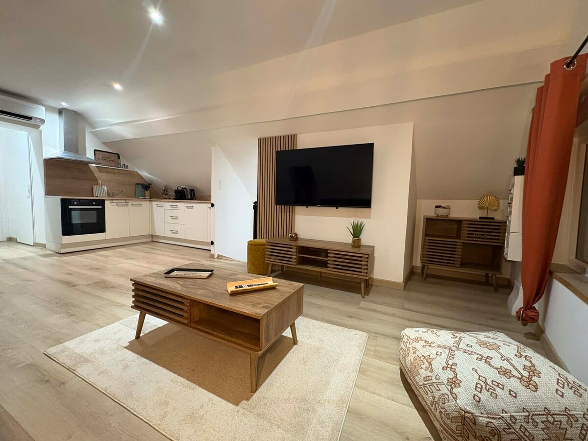 🌟 Dođite i uživajte u opuštajućem trenutku kao par u našem šarmantnom romantičnom smještaju, okrenutom prema prelijepom Parku Ronele. ➡️ Uživajte u privatnoj spa centru prestižnog brenda „Džakuzi” i opustite se nakon cjelodnevnog istraživanja grada. 🌿 Probudite se uz zvuk prirode, čućete cvrkut ptica kada se probudite. ⭐ Rezervišite sada za nezaboravan odmor u najpopularnijoj četvrti Valenciennesa.