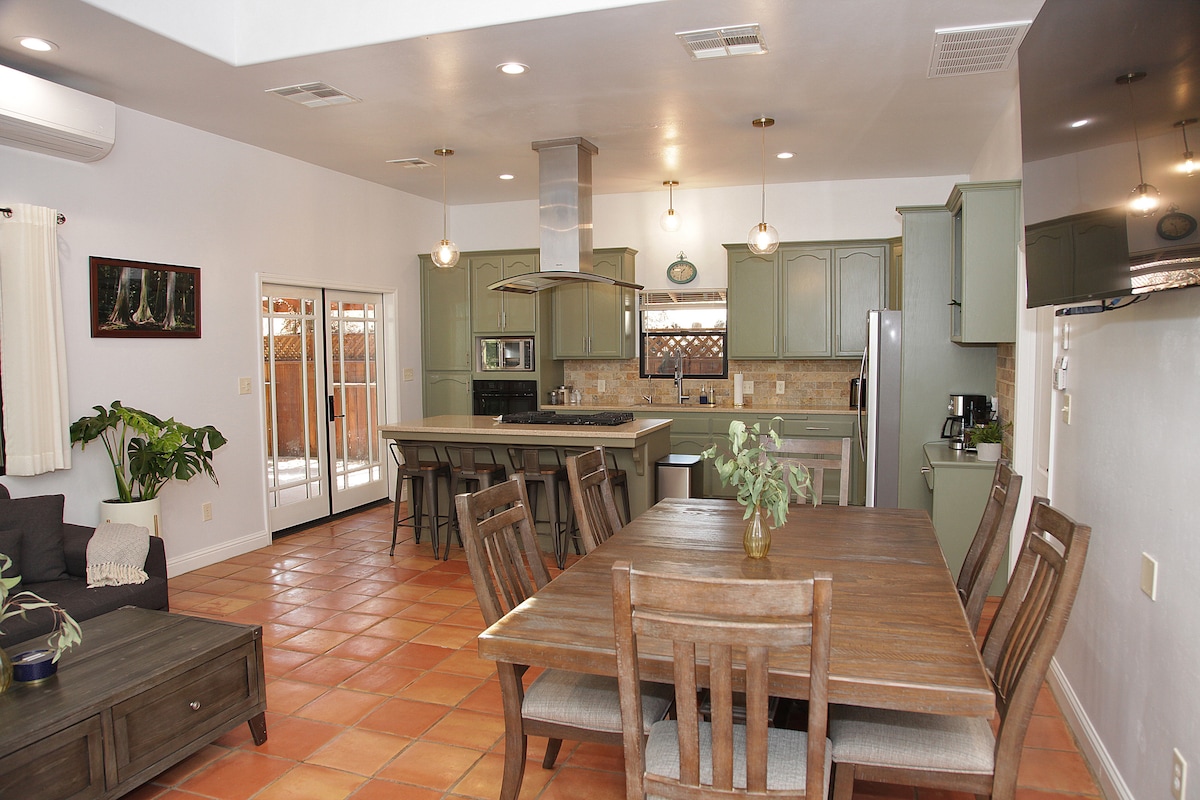 Dobro došli u svoju živopisnu oazu Boho u Bejkersfildu! Ovaj prelijepo preuređeni dom sa tri spavaće sobe ima privlačan električni dekor otvorenog koncepta sa espreso barom. Prostrano dvorište se može pohvaliti ogromnim bazenom, ognjištem i tiki barom savršenim za suncem okupane dane opuštanja pored bazena. Svaka spavaća soba nudi jedinstveni šarm, osiguravajući udobnost svim gostima. Praktično smješteni u blizini Kaloveja, svega vas nekoliko minuta dijeli od najpopularnijih gradskih mjesta. Uživajte u opuštanju i zabavi u ovom šarenom utočištu.