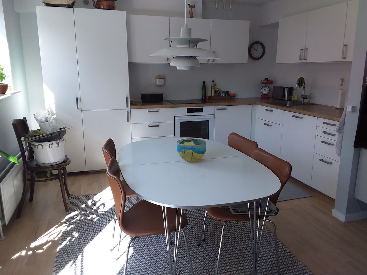 Zaboravite na brige u ovom prostranom i mirnom domu sa sjajnim pogledom. 3 spavaće sobe sa pametnim TV-om Bračni krevet (180 cm) Bračni krevet (140 cm) Dva kreveta za jednu osobu 90 cm Velika kuhinja s trpezarijom za 4 osobe i dobro opremljena Stan se nalazi na 1. spratu naše kuće i ima spoljne stepenice, iznajmljujete cijeli dom. Šećer od kafe i čaja je uključen Posteljina, peškiri i kuhinjski ubrusi su ono što bi moglo da vam zatreba tokom boravka. Jedva čekamo da vam poželimo dobrodošlicu u Farum21 km od Kopenhagena