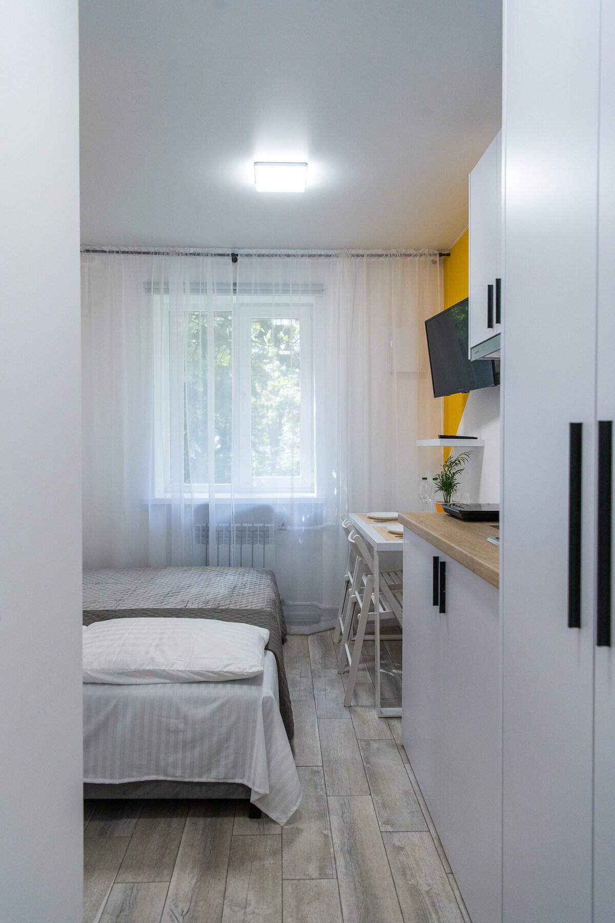 Udoban i sveže renoviran studio apartman, koji nećemo deliti sa vlasnicima kuća. Nalazi se u blizini centra grada. Ima sve što vam treba za udoban boravak i život. Šta je u blizini? - Supermarket (non-stop pijaca) i apoteka - 3 minuta pešice - Ogranak PrivatBank - 7 minuta - Centralni gradski bazar - 10 minuta - Centar grada - 20 minuta - Regionalna dečija bolnica - 10 minuta Besplatan parking ispred kuće.