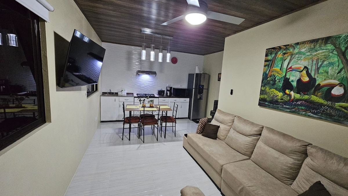 Žuta kuća za mačke je moderan, udoban i privatan dom. Nije potreban 4x4. 📍Nalazi se u Rivasu sa spektakularnim pogledom na planine. Savršen za dva gosta, udaljen je 18 minuta od nacionalnog parka Chirripó i u blizini rezervata Cloudbridge. Karakteristike uključuju brzi internet (200 Mbps), privatnu hidromasažnu kadu, natkriveni parking sa električnom kapijom, potpuno opremljenu kuhinju, privatnu teretanu i pristup sa stepenicama. Uživajte u miru i blizini centra grada i lokalnih staza. ✨ Kuća se nalazi ispred ulice 242.