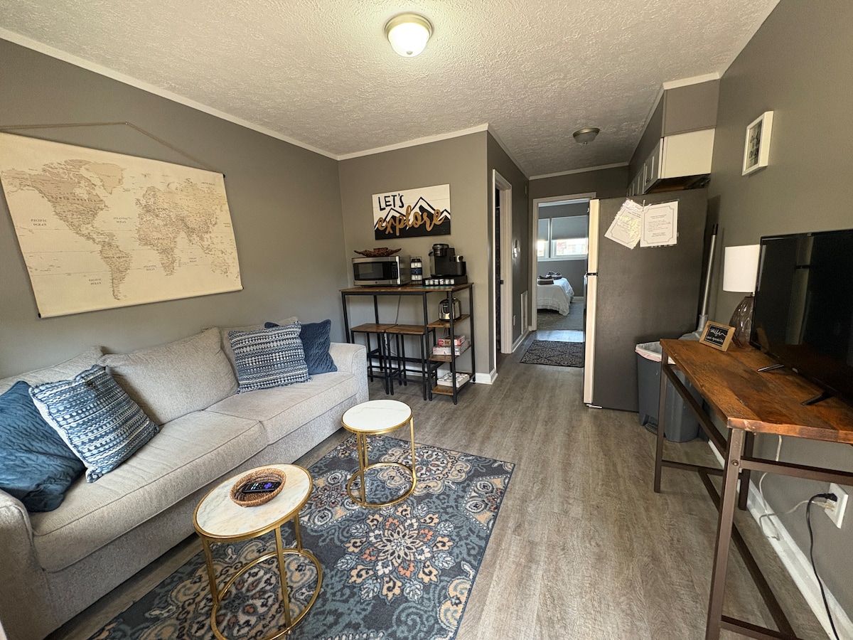 Kul seoska kućica, na kul maloj aveniji, u najboljem gradiću. Mjesto. Nedavno je ažurirano 2 spavaće sobe, 1 kupatilo sa otvorenim konceptom dnevnog boravka/trpezarije/kuhinje. Uživajte u izlasku sunca u sunčanoj sobi ili prednjem tremu. Opustite se gledajući zalazak sunca sa zadnje terase. Lokacija. Udaljena je milju od „mosta“ i najnovijeg nacionalnog parka. Uživajte u njegovoj centralnoj lokaciji do atrakcija i opreme u okolini. Takođe je ležerna šetnja do prodavnica i restorana istorijskog centra Fejtvila.
