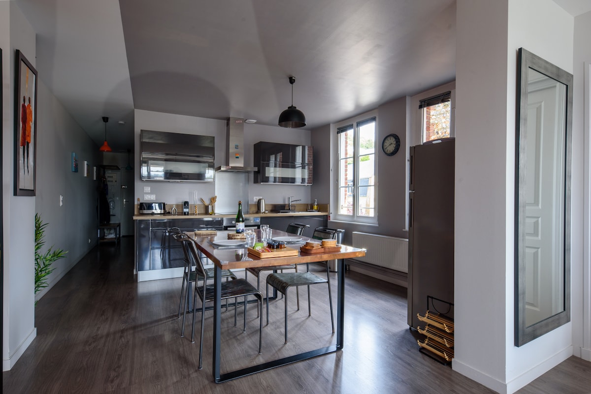 🏡 Prostor Smestite se u ovaj veliki, svetli potkrovni loft, koji kombinuje šarm, udobnost i modernost, idealan za 6/8 osoba. Savršeno mesto za deljenje prijateljskih trenutaka sa porodicom ili prijateljima uz dostupne igre (bilijar, stoni fudbal, arkadne igre itd.), nekoliko minuta od luke Fekan. Velikodušni i veoma svetli prostori. Smeštaj se nalazi na 3. spratu bez pristupa liftu. Za iznajmljivanje na jednu noć, dodatnih 50 evra se plaća na licu mesta.
