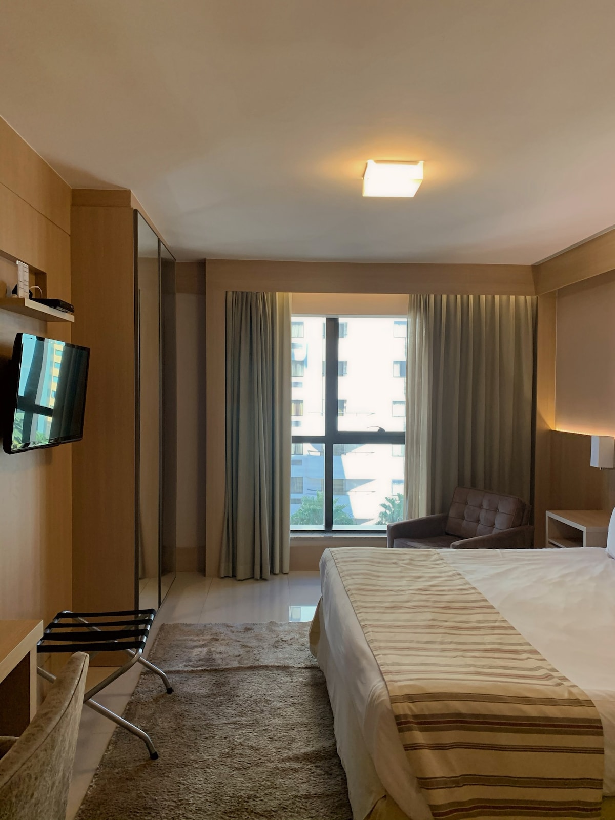 Aconchegante flat in the heart of Brasilia at Hotel Cullinan Premium (5 stars) with privileged views and location. U blizini Esplanada dos Ministérios, sektora komercijalnog, kongresnog centra, tržnih centara, gradskog parka, teretane i nacionalnog stadiona. Stan ima bračni krevet i krevete za jednu osobu, TV, internet, sto, mini bar, mikrotalasnu pećnicu i Nespresso aparat za kafu sa vodom i 01 besplatnu Nespresso kapsulu (slobodno uzmite Nespresso kapsule po želji). Dobro došli!