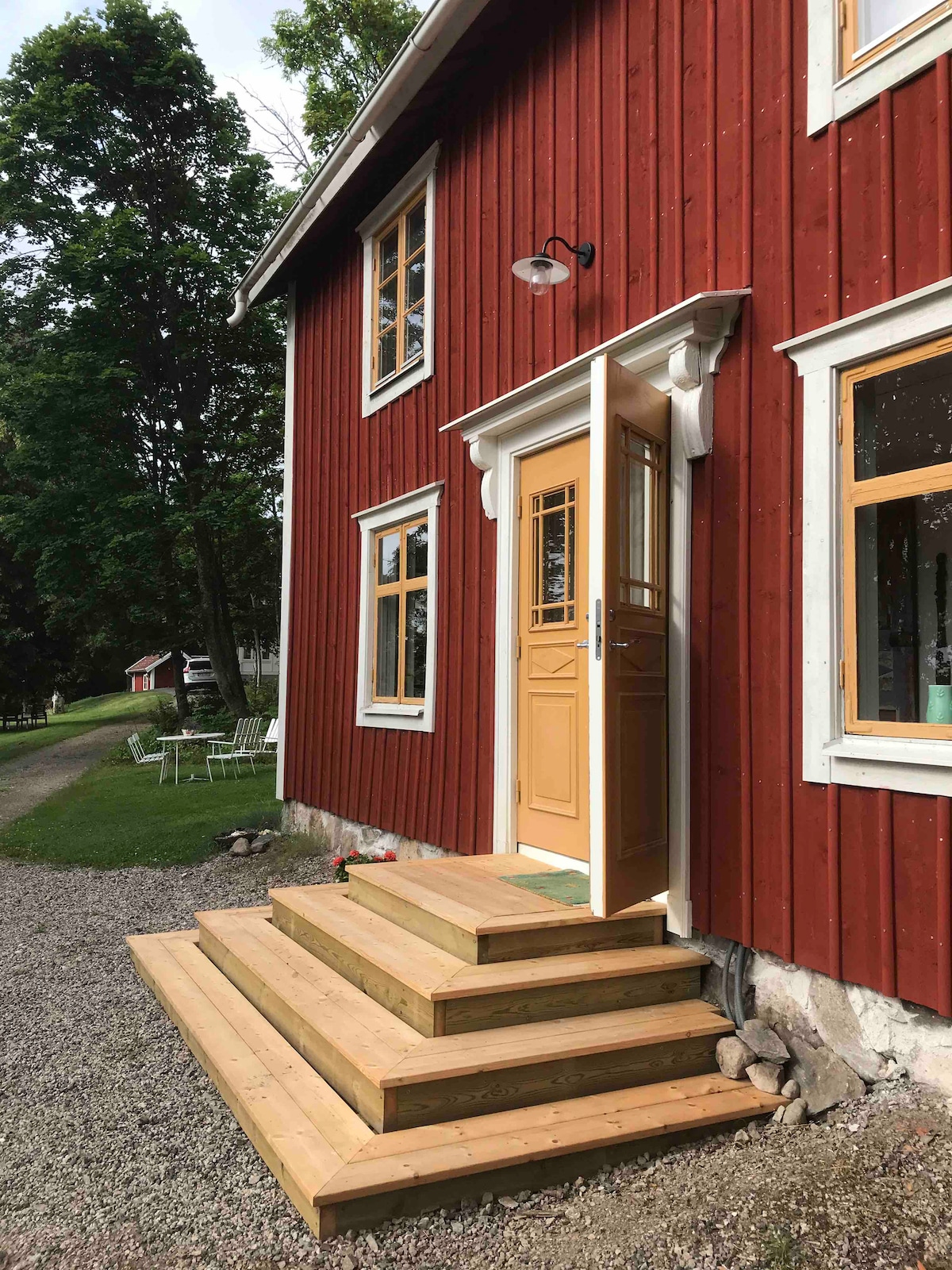 Tipična šarmantna švedska crvena seoska kuća u lijepom okruženju pored jezera (2 minute hoda) sa sopstvenim kupalištem sa platformom, pristupom brodu i jednim kanuom za do 3/4 osobe i besplatnim ribolovom (možete da pozajmite jednostavnu opremu za ribolov). Potpuno opremljena glavna kuća sa 3 spavaće sobe. Pored toga, na raspolaganju je i 1 mala kuća sa 4 kreveta. Ovde je veoma tiho i mirno i videćete ovce i konje kako pasu u blizini kuće.