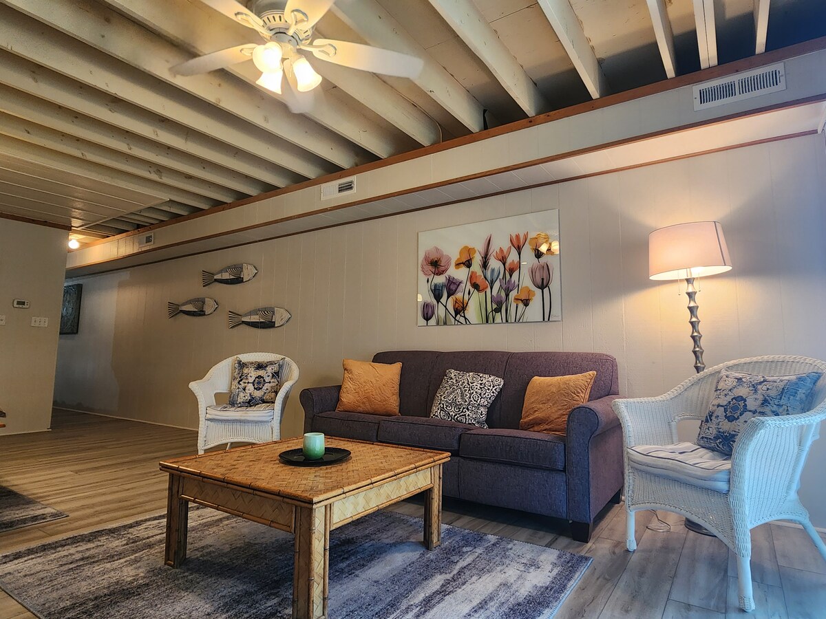 JEDINICA NA PRVOM SPRATU Bayside Condominium za najviše 4 - 6 osoba Pješačka udaljenost do parka Northside Šetnja do okeana , ne brinite o parkingu na plaži ZABRANJENO PUŠENJE 1 spavaća soba 1 kupatilo, stan na prvom spratu sa spoljašnjom terasom Ovaj klimatizovani kondominijum sa jednom spavaćom sobom ima potpuno opremljenu kuhinju, mašinu za pranje/sušenje veša, frižider. Postoji bračni krevet (širine 150-179 cm) i bračni krevet (širine 150-179 cm) Kauč sa bračnim krevetom (Queen Sleep) u dnevnoj sobi *MORA IMATI 21 ili VIŠE* nema kućnih ljubimaca!