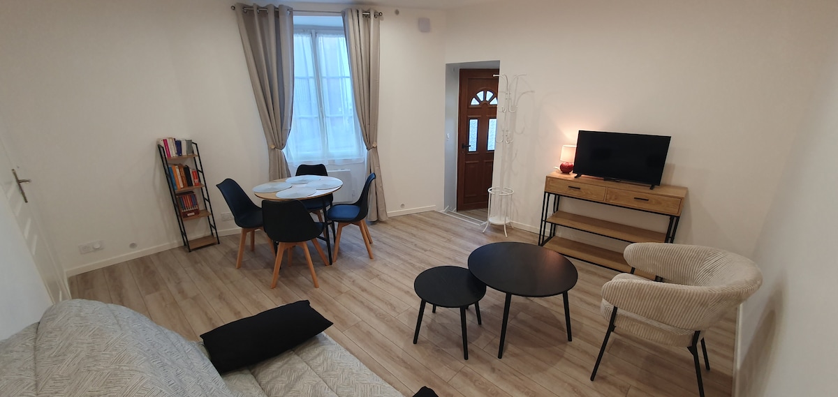 Logement élégant et refait à neuf . Composé d'un beau séjour/salon avec canapé convertible 2 places, d'une cuisine entièrement équipée, d'une chambre indépendante avec dressing et d'une salle de douche avec toilette. En plein centre ville de Ferrières en brie, à proximité immédiate de l'autoroute A4, du RER A de Bussy saint Georges, arrêt de bus à 20m. Proche tous commerces, cadre verdoyant en forêt, étang de la taffarete et du château. Disneyland à 15 min, Paris à 40 min en voiture.