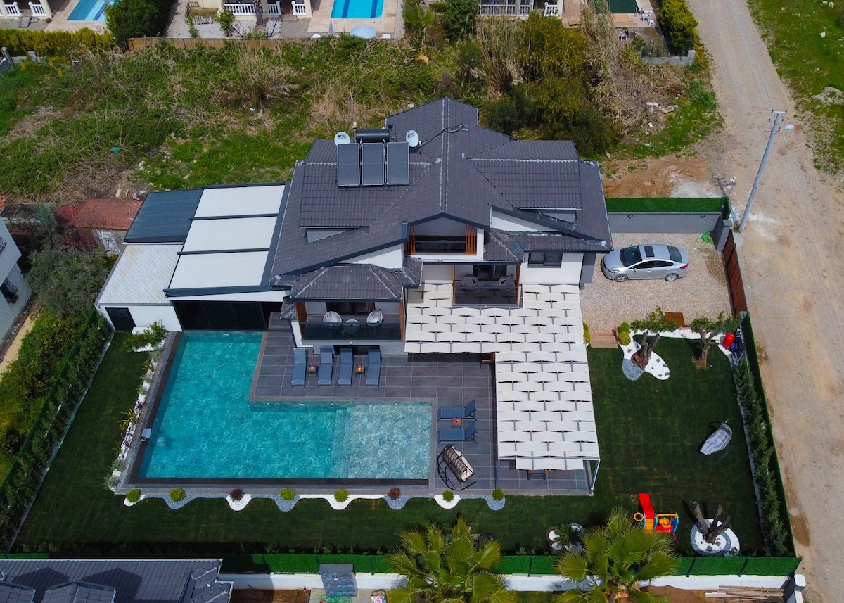 Ovaj jedinstveni smještaj ima svoj stil. Naša vila ima dva velika unutrašnja i spoljašnja bazena u Kajakoju, u Fetiji. Unutrašnji bazen ima grejanje i sistem sa slanim hlorom. Tu je takođe i hidromasažna kada u unutrašnjem i spoljnom bazenu. Vila je pažljivo namještena u luksuznom konceptu i ima zaštićeni bazen. Nudi veličanstven odmor parovima na medenom mjesecu i nuklearnim porodicama. Nalazi se na 10–15 minuta od centra Fetijea ili centra Oludeniza. Ima privatni parking.