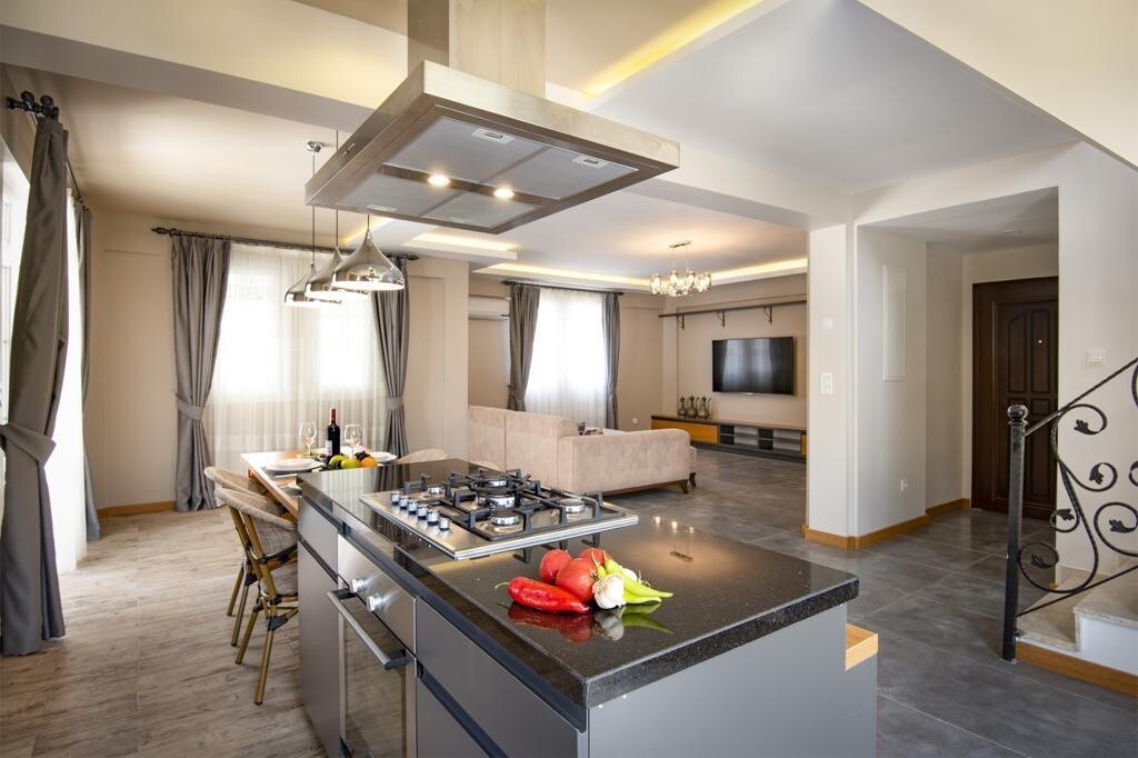 Naša vila se nalazi u najelitnijoj četvrti Fetije i nalazi se na veoma pogodnoj lokaciji do centra, mora, zabave, parkova i sportskih područja i veoma je blizu apoteka,bolnica, supermarketa i restorana. Naša vila, koja ima tri apartmana, ima hamam, saunu, a obje sobe imaju dvostruku hidromasažnu kadu. Za mjesečni najam, voda,struja, internet i sedmično čišćenje pripadaju zakupcu. Naknada za sigurnosni depozit iznosi 700 $ Bazeni su zatvoreni zbog vremenskih uslova od 1. novembra do 30. aprila