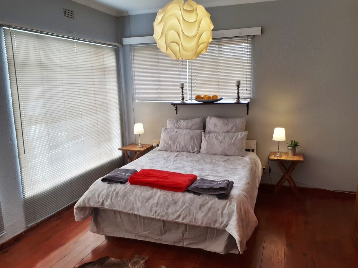 We provide Basic Over-Night Accommodation in Parys. The ground floor bedroom sleeps 2 guests (queen-size bed). The living room accommodates 4 guests (2 Single & 1 Bunker bed). The en-suite bathroom has a Shower, Basin and Toilet. (No Bath Tub!). The upper room sleeps 2 guests (queen-size bed, aircon, en-suite Toilet & Basin). All rooms use the same entrance. ONLY 1 group will be booked at a time. The facility is NOT self Catering. There are facilities for Braai! We are Pet Friendly!