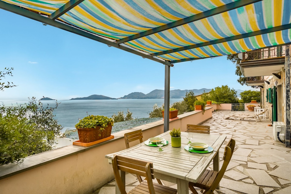 Tipična i ekskluzivna četvorospratna kuća sa zemljanim krovom, sa direktnim pogledom na liticu Telara, jednog od najšarmantnijih sela u Italiji. Sa terase možete da doživite nezaboravne trenutke: doručke uz miris mora i večere uz sveće sa spektakularnim pogledom na Portovenere i ostrva Tino i Palmarija. Ovde ćete naći sve što vam je potrebno za jedinstven boravak, pravo ljubavno gnezdo gde će jedina pozadina biti zvuk talasa.