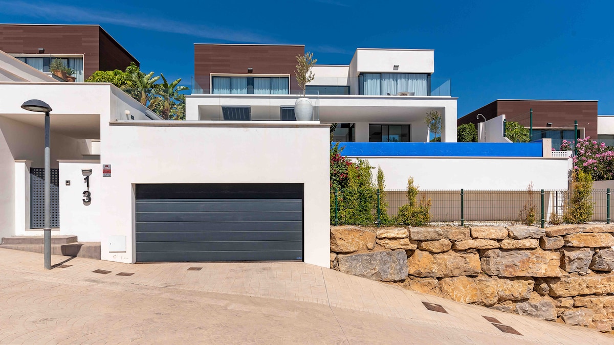 Uniek nieuwe woning op toplocatie. Super verwarmd zwembad. Design, edele materialen. Frontline golf, frontline zeezicht op inkom van Estepona haven. De Cosy Cosita is een zelf-omheinde villa, op zekere hoogte gebouwd, geopend naar het zwembad en de tuin, midden in de natuur. 5 minuten tot Estepona haven en het strand. Vanop het dakterras: 360 graden panorama met zicht op de golf, de baai van Estepona en de prachtige bergketen Sierra Bermeja. Een golf 18 holes op 500m, één op 1km en één op 3km.