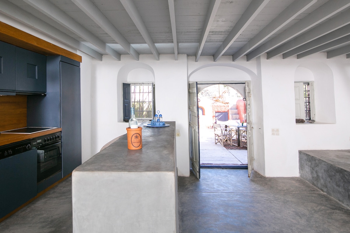 Ova izuzetna vila površine 75 m2, prvobitno izgrađena unutar vulkanskog tla, sada je obnovljena luksuznim savremenim futurističkim štihom. Ovaj jedinstveni objekat sa svojim inovativnim prostorom i nadrealnom konstrukcijom otelotvoren je zvučnim pokretom i vizuelnom esencijom. Vila se sastoji od potpuno opremljene kuhinje i trpezarije/dnevnog boravka s pogledom na opojni vulkanski pogled i mirnog hipnotišućeg pogleda na more.