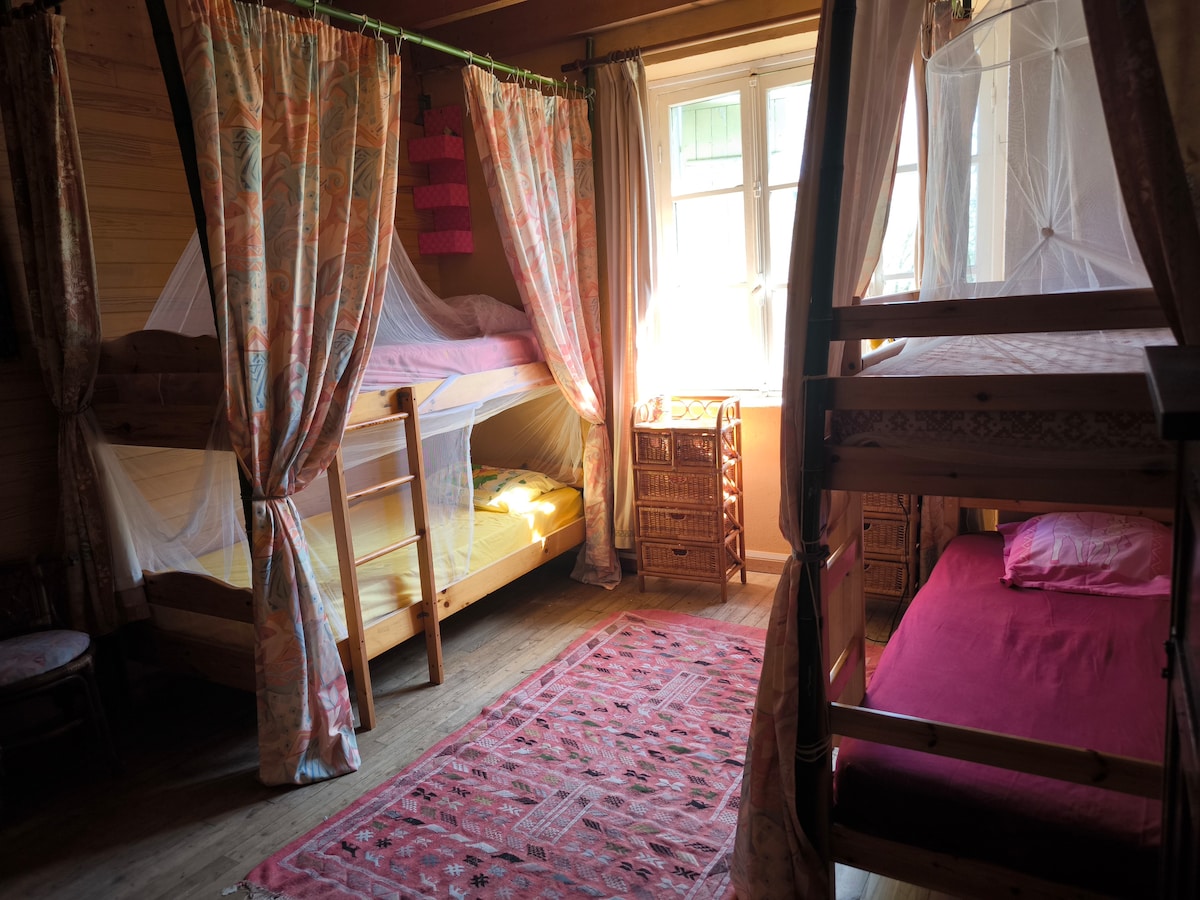 Privatnost privatne sobe, prijatan ambijent malog utočišta na moru! Soba u prizemlju smeštaja Gîte d'Étape Norzh u Lilija Plugernoau (Lilia Plouguerneau). Ekološka i morska arhitektura. 4 kreveta, 2 kreveta na sprat. Zajedničko sa ostalih 6 spavaćih soba: dnevni boravak sa mrežom na mezaninu, šporet, potpuno opremljena kuhinja. Plaže, prodavnica, restorani su udaljeni samo nekoliko koraka. Živimo u objektu i rado ćemo vam pružiti savete pre i tokom boravka. Rezervacija samo putem našeg norveškog sajta – ecogite.bzh Otvoreno tokom cijele godine.