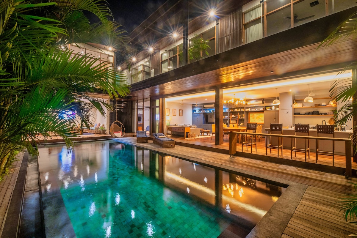 Klizna vrata od poda do plafona stvaraju harmoniju na unutrašnjosti, što čini prelazak sa privatnog bazena, ekskluzivnom saunom i prostranim dnevnim boravkom besprekorno. Raskošan krevet hvata slatke snove o danu koji je prošao i dekadentno kupatilo sa kadom koja vas čeka. Kreirajte uspomene gledajući veličanstveni zalazak sunca na Baliju na vašoj privatnoj terasi na krovu pre nego što podijelite intimne razgovore o opuštajućoj trpezariji.