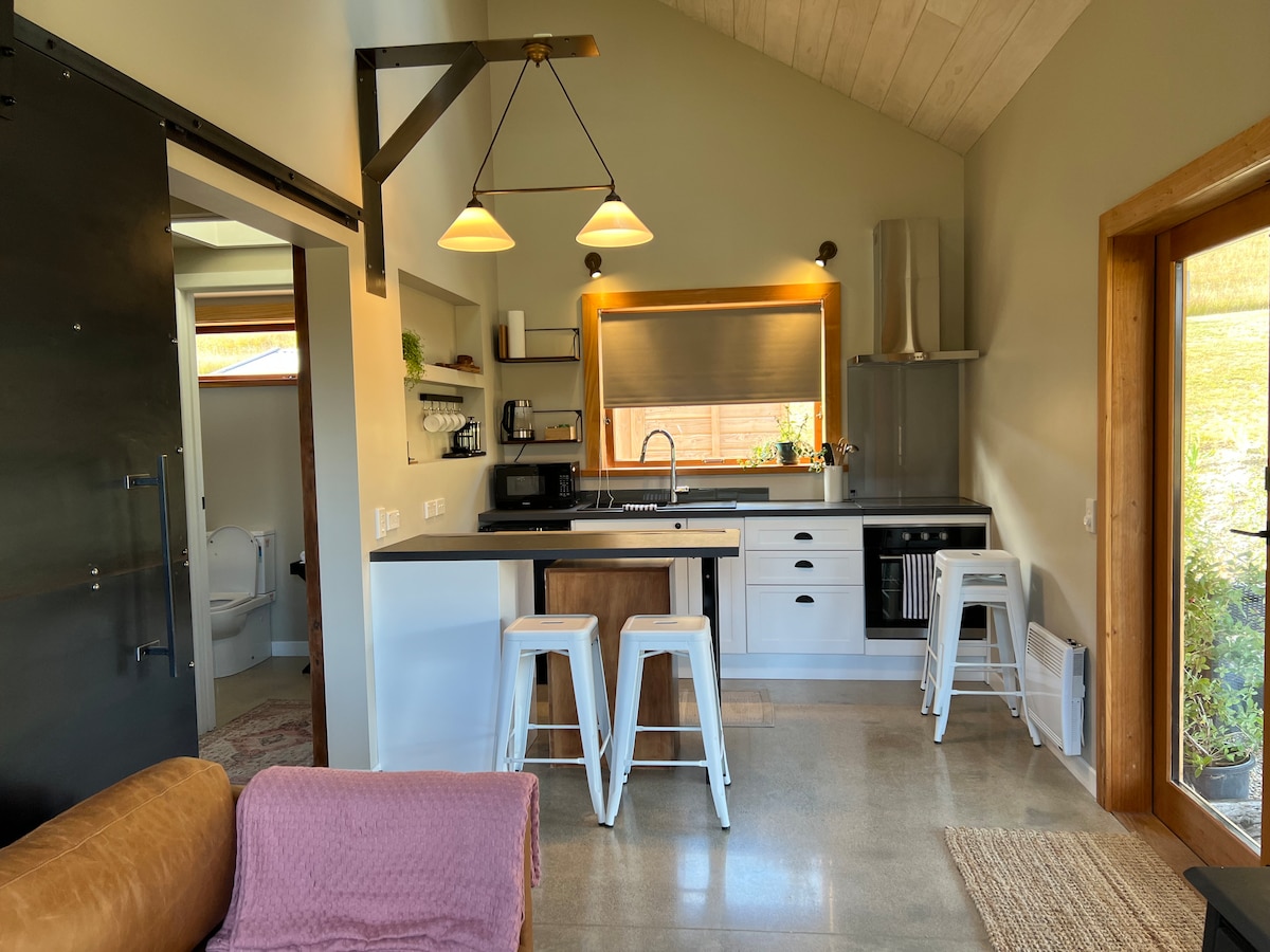 Moderan sa privatnom hidromasažnom kadom. Samostalni luksuzni apartman za goste na selu. Privatni odmor, romantični vikend ili baza za vaš doživljaj u Fiordlandu. Oko 5 minuta vožnje do grada i 320 metara nadmorske visine sa veličanstvenim planinskim pogledom na Nacionalni park Fiordland. Otvorite veliki klizač do privatnog unutrašnjeg dvorišta. Uživajte u predivnom zalasku sunca ili pogledu na zvijezde u hidromasažnoj kadi u okruženju privatnog vrta. Savršeno za parove ili samce.
