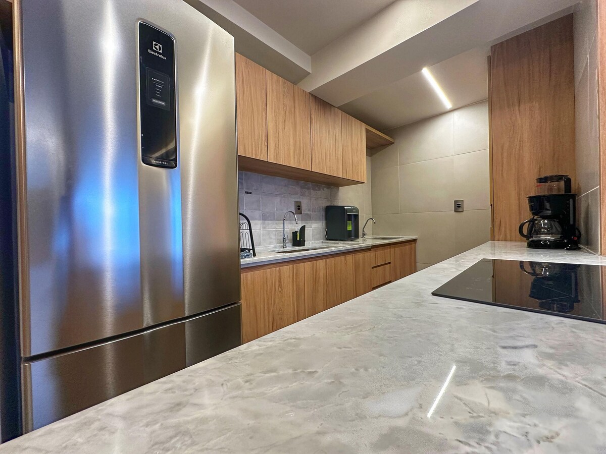 Wake up to the sound of birdsong and the waves coming and going. Relax in the hammock in the living room, feel the gentle breeze and enjoy the perfect pool to end the day in peace. This fully equipped apartment is ideal for families looking for rest, comfort and security. A cozy environment, equipped to make your stay practical and memorable — from breakfast on the balcony to a nap lulled by the sound of the sea. An experience to renew your energy, very close to nature.