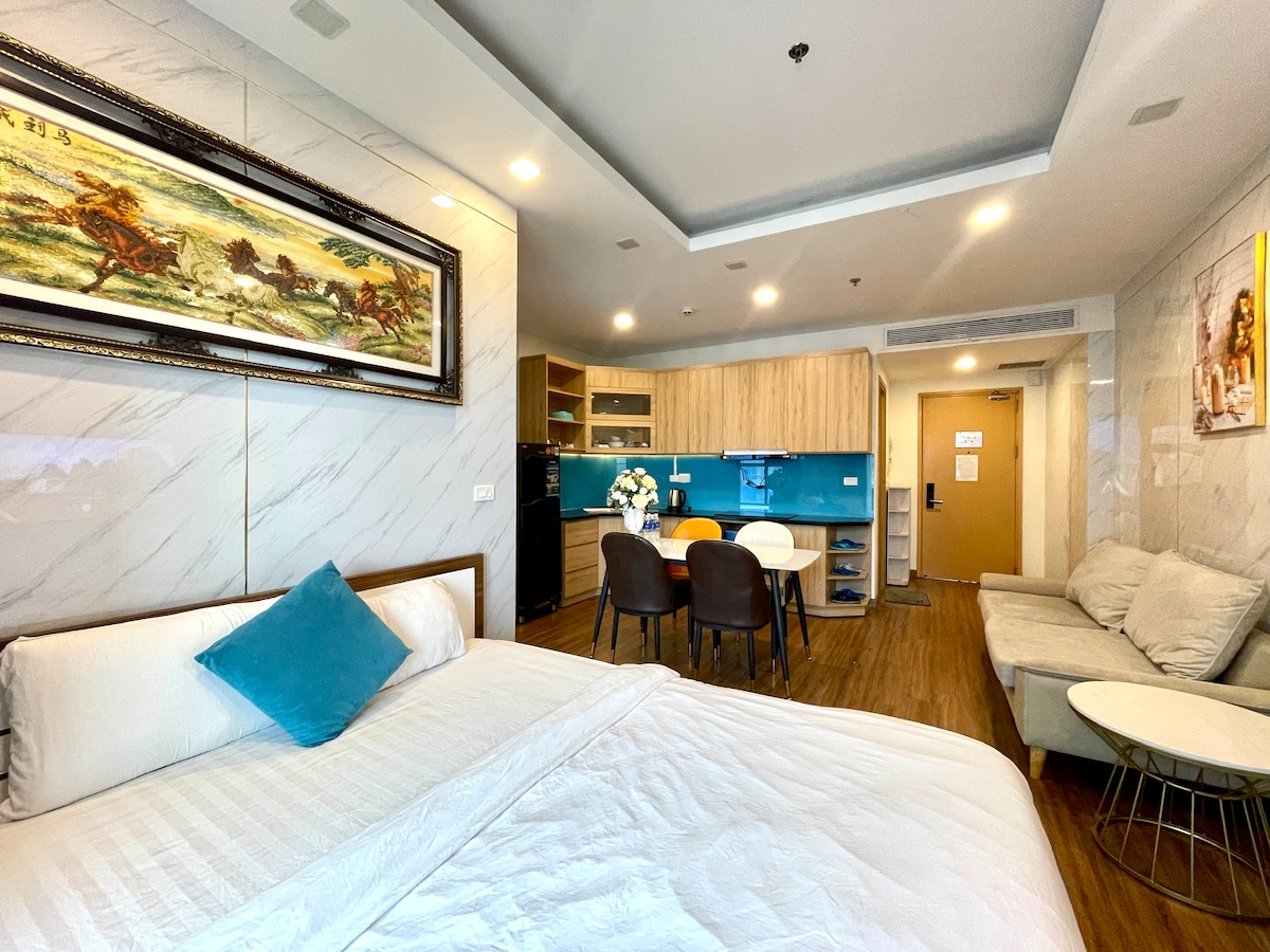 Welcome to a relaxing seaside retreat in the heart of Quy Nhon! This modern and cozy studio with a sea view balcony is located inside TMS Quy Nhon - Hupasearest - just a 2-minute walk from the beach. Ideal for couples, solo travelers or business travelers looking for a clean and fully-furnished space like your own home. 🛏️ The studio is equipped with: 1 comfortable King-size bed. Air conditioning, Wi-Fi, Smart TV. Kitchenette with refrigerator, cooking utensils. Private bathroom with hot water