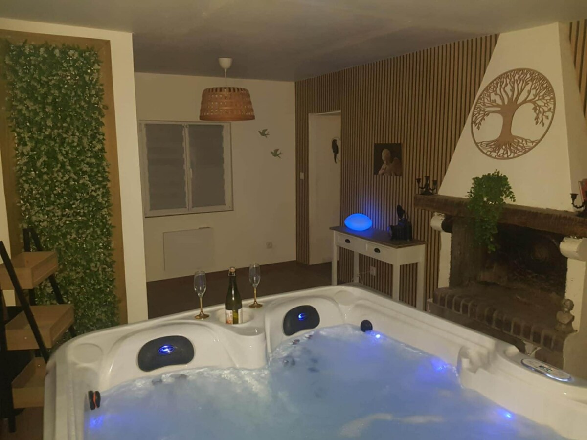 Venez passer un moment unique à VIRE & Bulles! Que ce soit en amoureux ou seul, venez vous ressourcer dans cette spacieuse baignoire Balnéo haut de gamme deux personnes. Cette baignoire balnéo rectangulaire possède 51 jets hydromassants et bénéficie de la fonction chromothérapie. Le logement est équipé d’un lit queen size avec un matelas épais de qualité hôtelière. La tête de lit possède un bandeau led permettant de changer l’ambiance à votre convenance. Une jolie cuisine complète ce lieu!