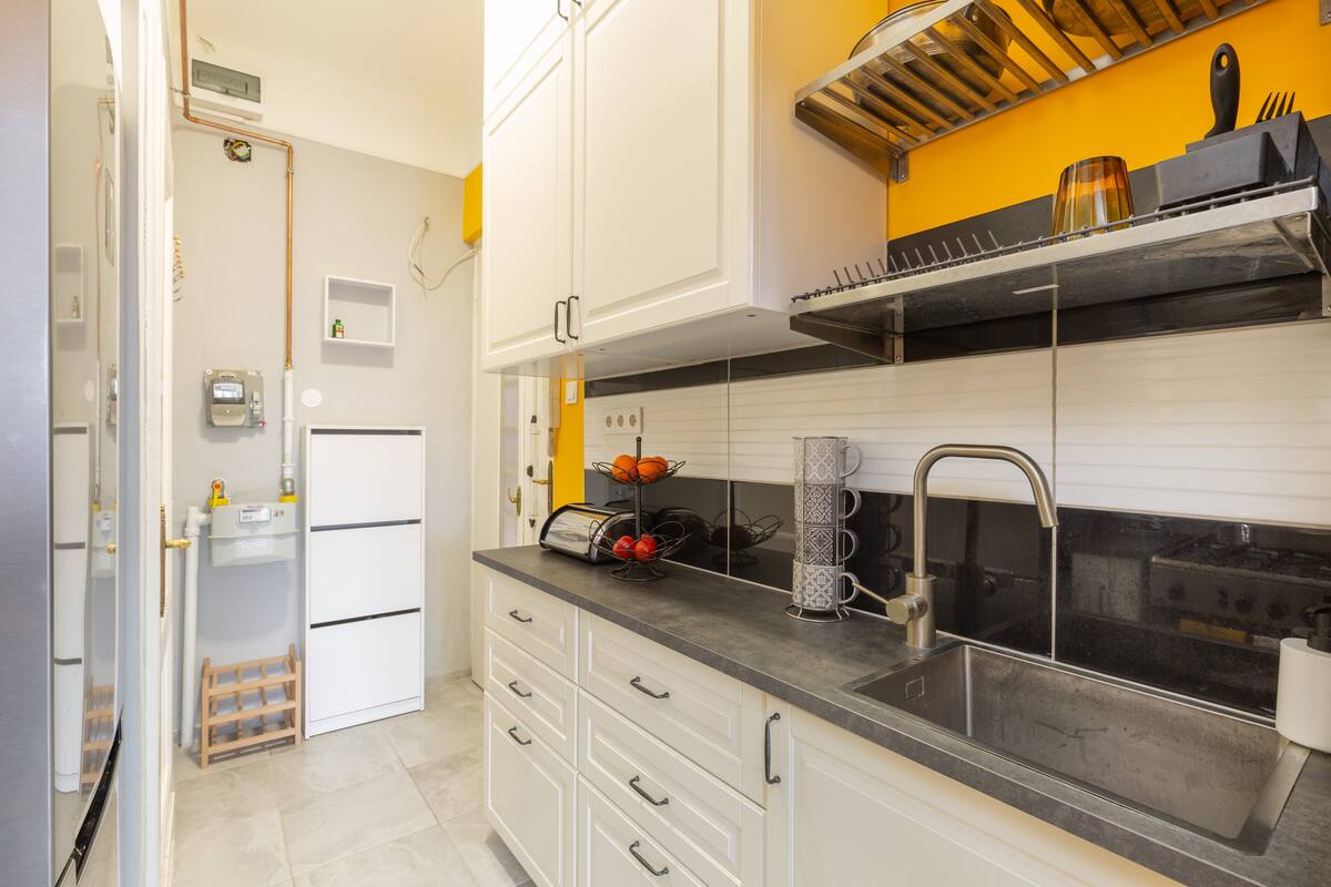 Kada je u pitanju opremanje ovog udobnog stana, ideja je bila da se svojim budućim gostima stvori nešto izuzetno u delikatnom stilu i obezbijedim smještaj pun sadržaja i jedinstvenih detalja. Sa bračnom spavaćom sobom i prostranim dnevnim boravkom, idealan je za parove i solo putnike. Udaljen je samo nekoliko koraka od Dunava u najboljem delu legendarnog 13. okruga, tako da ćete biti u centru grada kada izađete iz zgrade. Uđite i pogledajte!