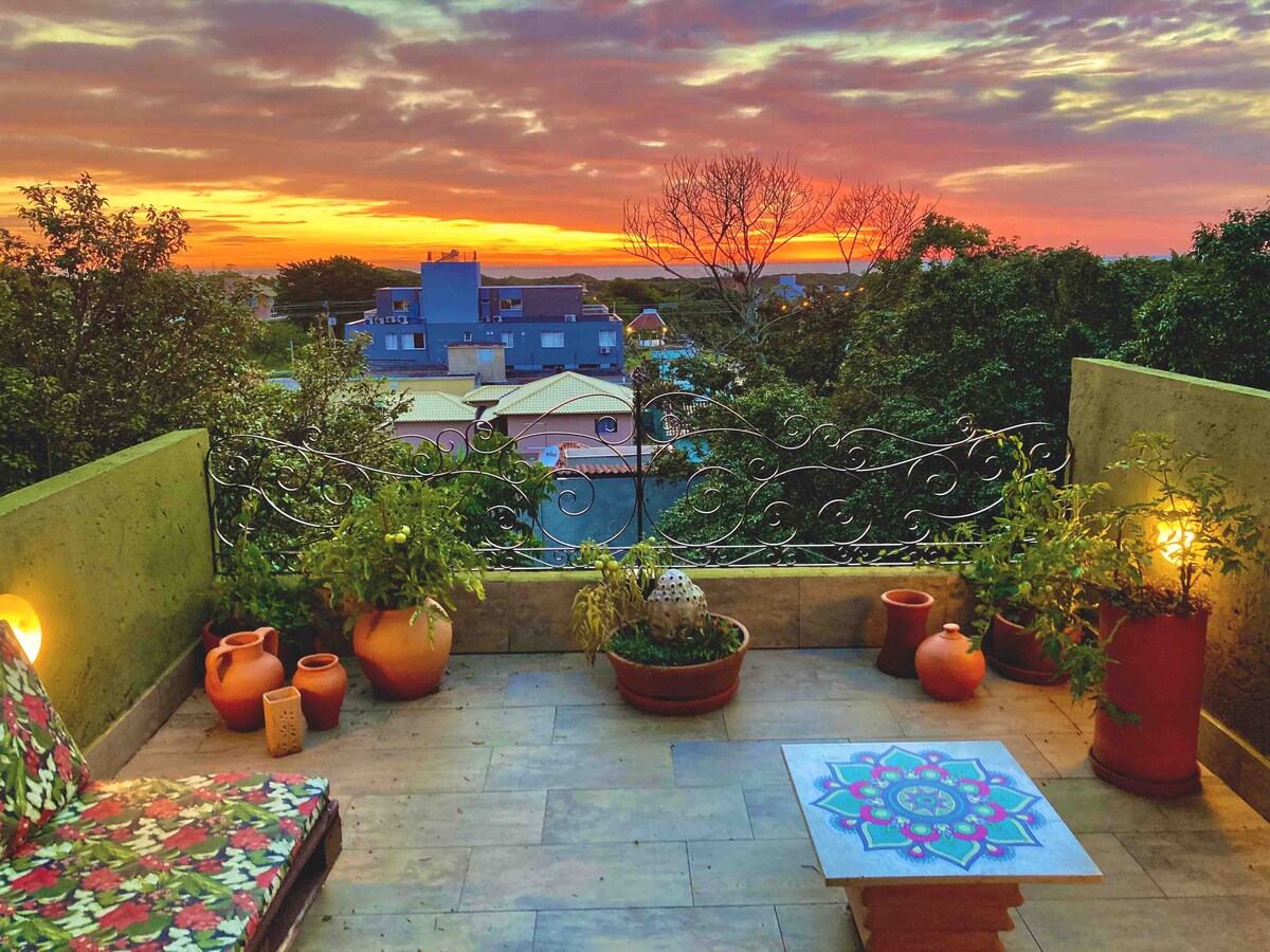 Potkrovlje sa panoramskim pogledom na Praja do Roza, mesto mirno i elegantno okruženo atlantskom šumom, 5 minuta hoda do plaže ! Tuš pod pritiskom, topao i hladan klima uređaj, puna američka kuhinja, balkon sa mreža, ležaljke za plažu i Guarda sunce!!I Internet 300 mb , pametni TV 43 Opcioni doručak! PAŽNJA: Zabave i glasni zvukovi nisu dozvoljeni, poštujte tiho radno vreme od 22:00!