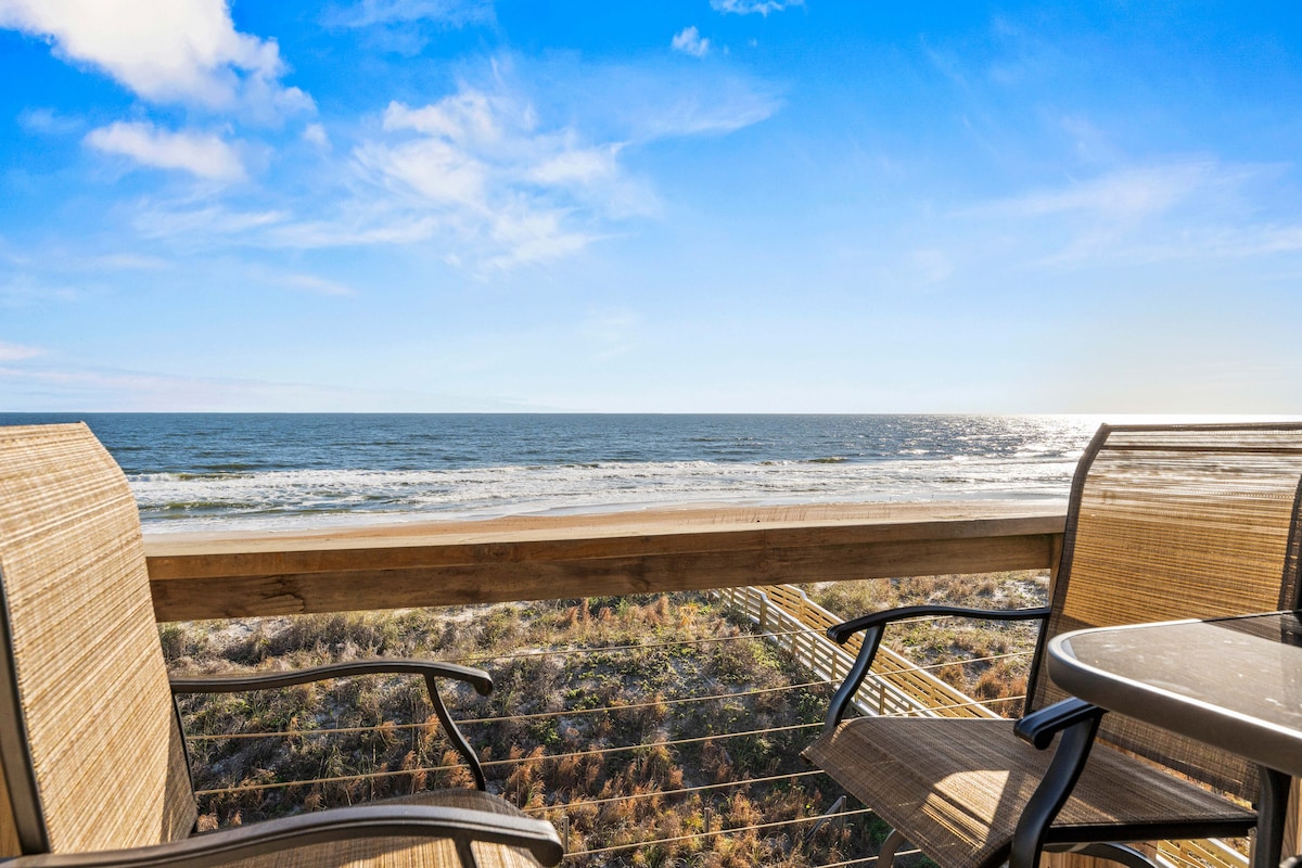 NO EXTRA FEES AFTER BOOKING! Wake up to Gulf views from your PRIVATE BEACHFRONT BALCONY in this charming, low-rise condo. Step directly onto sugar-white sand and emerald waters just outside your door. Enjoy a year-round, seasonally heated pool with an easy walk to Pier Park for dining, shopping, attractions, and nightlife. Looking for different dates or layout? I own 5 condos in this building. Click my host profile, then scroll down to view all of my listings.🌴