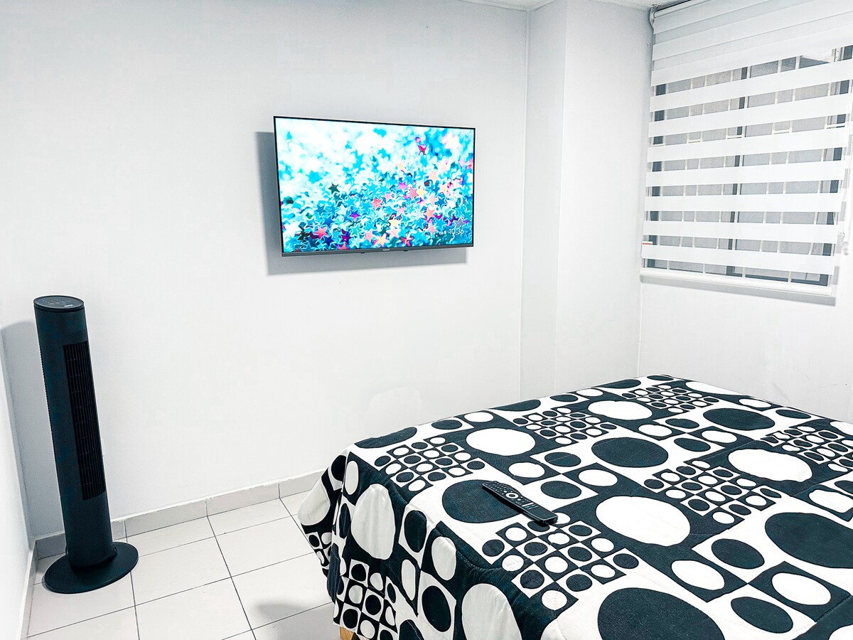 Prostran studio apartman, odlična lokacija, dva bloka od Pan American Stationeryja i tri bloka od klinike San Luis. To je veoma miran i gostoljubiv sektor. Ima toplu vodu, 180 megabajta Wi-Fi, kablovsku televiziju sa 86 HD kanala, 43-inčni Smart TV, dasku za peglanje, dasku za peglanje, mašinu za pranje veša, blender i posuđe, između ostalog. Drugi sprat bez lifta. Sve je blizu.