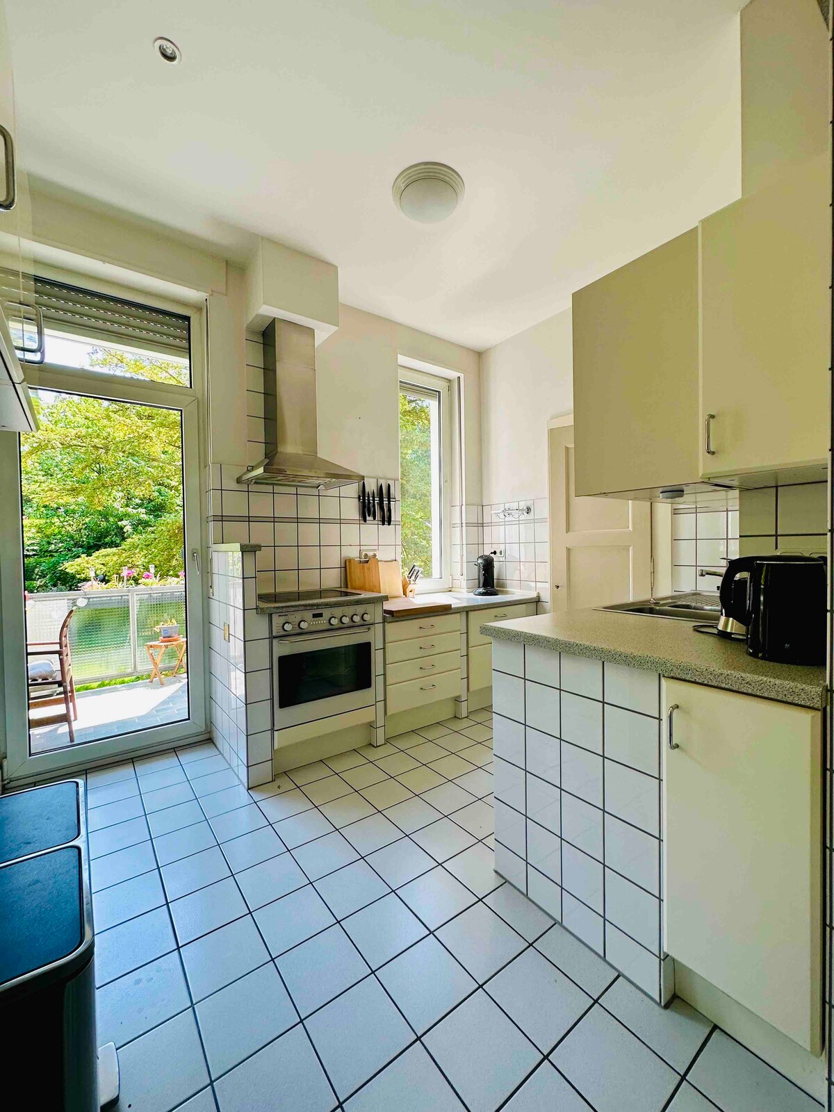Unsere modern und gemütlich eingerichtete Wohnung (ca.50qm) liegt mitten im Zentrum der Landeshauptstadt Saarbrücken. Die Wohnung befindet sich in der Hochparterre eines Mehrfamilienhauses. Die Wohnung ist eine kleine Oase in der Stadt mit Balkon und Blick in einen grünen Innenhof. Eine schöne eingerichtete Einbauküche mit modernen Geräten, Kühlschrank inkl Gefrierfach & Nespressomaschine. Komfortables King Size Boxspring Bett (auf 2x2m) und natürlich schnelles Internet (WiFi) ist vorhanden.