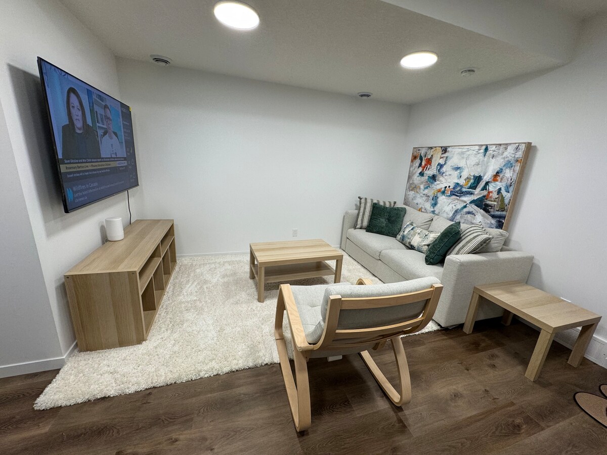 Moderan, udoban apartman za goste savršen za porodicu, parove, putnike koji putuju sami, odmor ili poslovna putovanja. Sa udobnim bračnim krevetima, mokrim barom, modernim kupatilom i svijetlim životnim prostorom, ovaj apartman ima sve što vam treba za opuštajući boravak. Praktično smješten u novoizgrađenoj zajednici Volf Vilou, s pogledom na park Fish Creek i prestižni Golf klub Blue Devil, to je idealna baza za istraživanje područja Kalgarija i mirne atmosfere za opuštanje nakon vaše avanture!